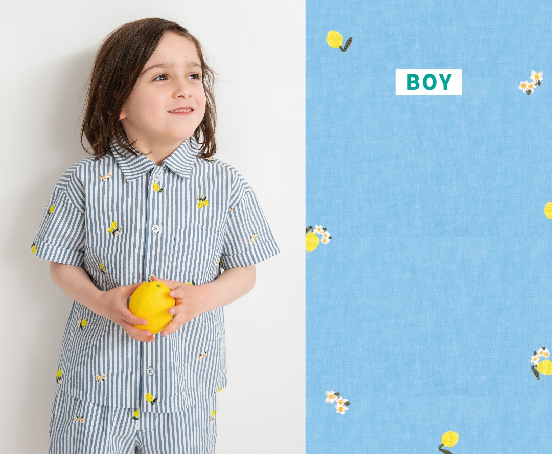 【おそろい】レモン&フラワー総柄刺しゅう半袖シャツ