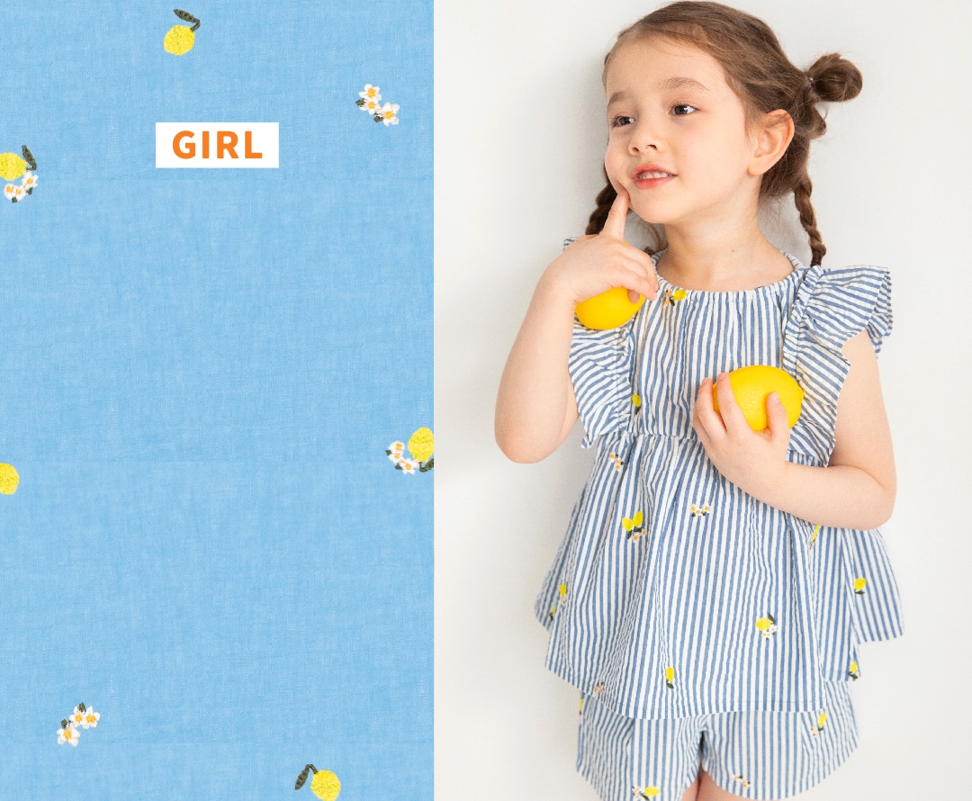 【おそろい】レモン&フラワー総柄刺しゅうドッキングTシャツ