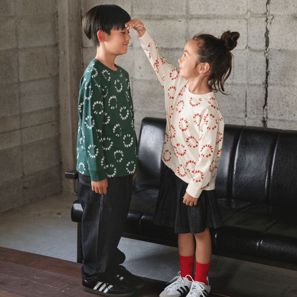 ■商品ポイント■<br>お気に入りの1枚がきっと見つかる♪<br>カラバリ・柄バリ豊富な綿100%長袖Tシャツ<br>袖口がリブ仕様なので腕まくりした際に<br>きゅっと止まるのも普段使いには嬉しいポイント!<br>兄弟姉妹、友達同士でのお揃いコーデにもおすすめです<br>あって嬉しい♪お名前ネーム付き<br><br>■素材■<br>本体部分:綿100%生地(天竺)を使用<br>吸水性が高く通気性が良いのが特徴<br>肌触りが良くお子様の肌にも安心です<br><br><br>■DRCbranshesとは?■<br>Daily…毎日<br>Relax…力を抜いて、くつろぐ<br>Comfortable…気持ちの良い、快適な<br>着心地の良い服を、手に取りやすい価格で。<br>『毎日着て欲しい』<br>そんな思いを込めてブランシェスから<br>デイリーウェアをご提案する新レーベルです<br><br>-----<br>伸縮性:あり<br>透け感:03:プリント1_OW/ややあり<br> 92:文字総柄_IV/ややあり<br> その他カラー/なし<br><br>#drc#おとこのこ#おんなのこ#ボーイズ#ガールズ<br>#通園コーデ#通学コーデ#小学生コーデ<br>#プチプラ#プチプラ子供服#子供服通販<br>#お揃い#お揃いコーデ<br>#ペア#ペアコーデ<br>#リンク#リンクコーデ<br>#ユニセックス#160cm<br><br>着用イメージ/カラー:チャコールグレー<br>モデル:身長117.0cm 体重19.5kg<br>サイズ:サイズ130 | 在庫がありません | ||