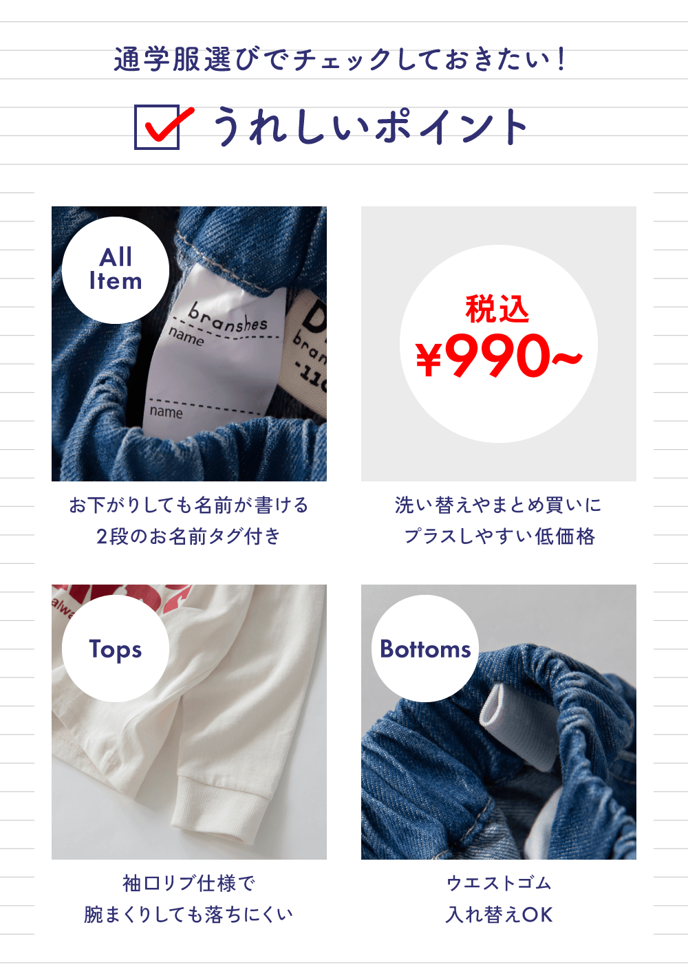 ■商品ポイント■<br>しっかりとタックが入った立体感のあるシルエットの<br>ロングパンツはゆったりとしたシルエットが今っぽく<br>カジュアルコーデにピッタリの1本です<br>性別問わず着用できるのも嬉しいポイント<br>あって嬉しい♪お名前ネーム付き<br><br>■素材■<br>程よい厚みと柔らかさを兼ね備えた綿100%ツイル生地<br>シーズン問わずお使いいただけます<br><br>■DRCbranshesとは?■<br>Daily…毎日<br>Relax…力を抜いて、くつろぐ<br>Comfortable…気持ちの良い、快適な<br>着心地の良い服を、手に取りやすい価格で。<br>『毎日着て欲しい』<br>そんな思いを込めてブランシェスから<br>デイリーウェアをご提案する新レーベルです<br><br>-----<br>伸縮性:なし<br>透け感:なし<br>ポケット:両脇と後身頃にあり<br><br>#drc#おとこのこ#おんなのこ#ボーイズ#ガールズ<br>#通園コーデ#通学コーデ#小学生コーデ<br>#プチプラ#プチプラ子供服#子供服通販<br>#お揃い#お揃いコーデ<br>#ペア#ペアコーデ<br>#リンク#リンクコーデ<br>#ユニセックス<br>#100cm#110cm#120cm#130cm#140cm#150cm<br><br>着用イメージ/カラー:カーキ<br>モデル:身長123.5cm 体重22.5kg<br>サイズ:サイズ130 | 在庫がありません | ||