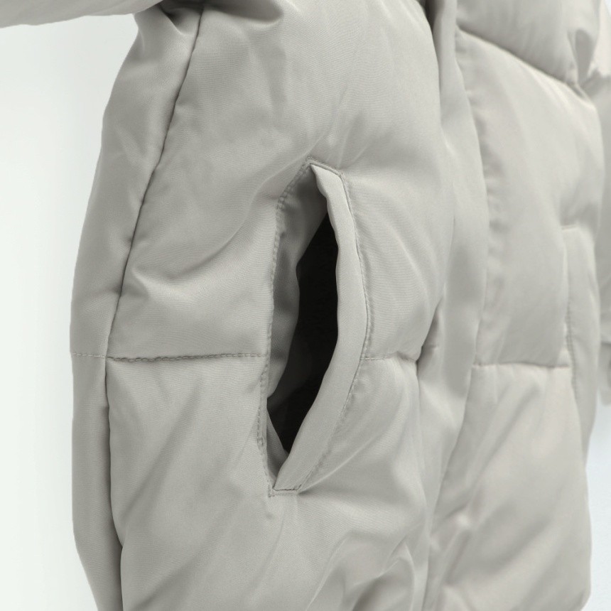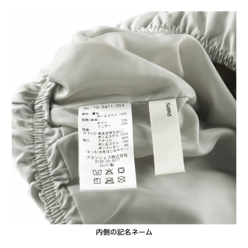 - 【表地・裏地】ポリエステル100% 【詰物(本体)】ダウン70% フェザー30% 【詰物(ポケット口・前あき持ち出し)】ポリエステル100% 袖口:アクリル82% ポリエステル14% ポリウレタン4% はっ水(水をはじきやすい):