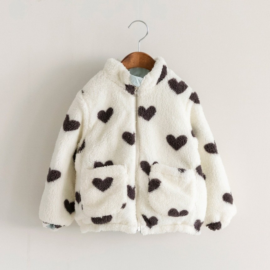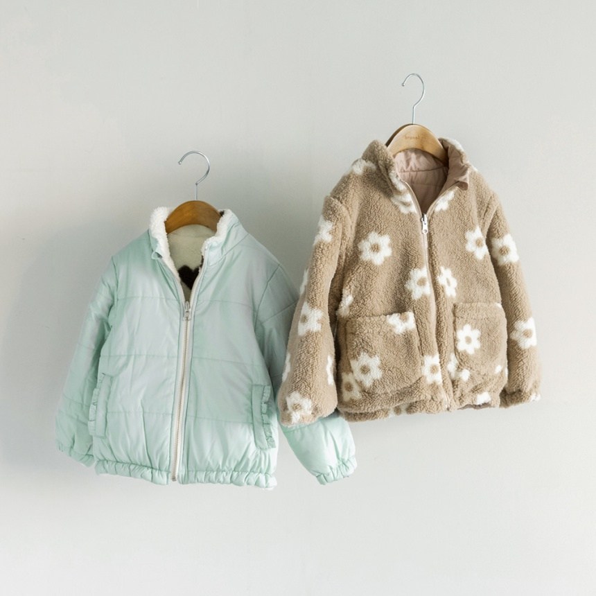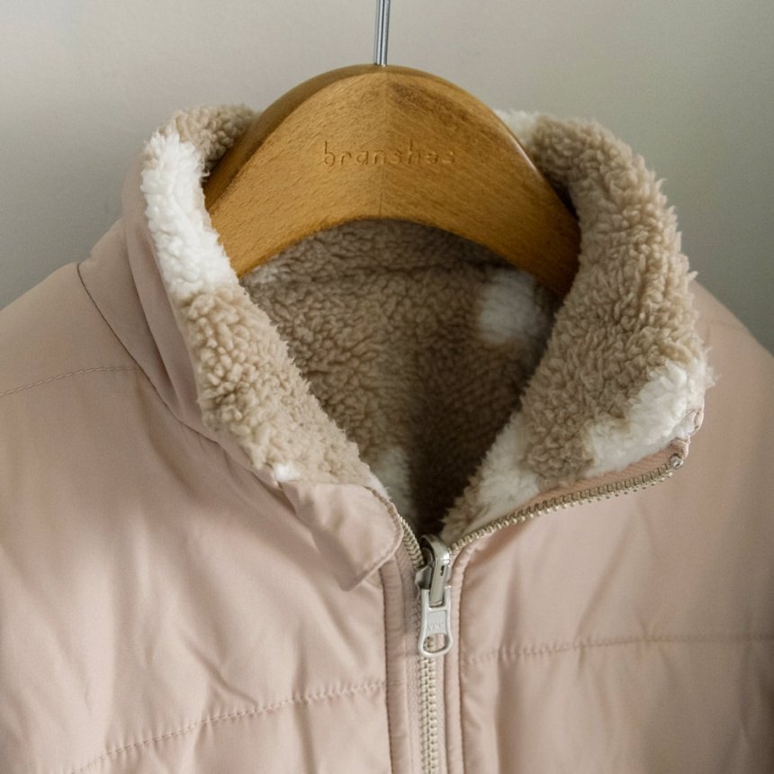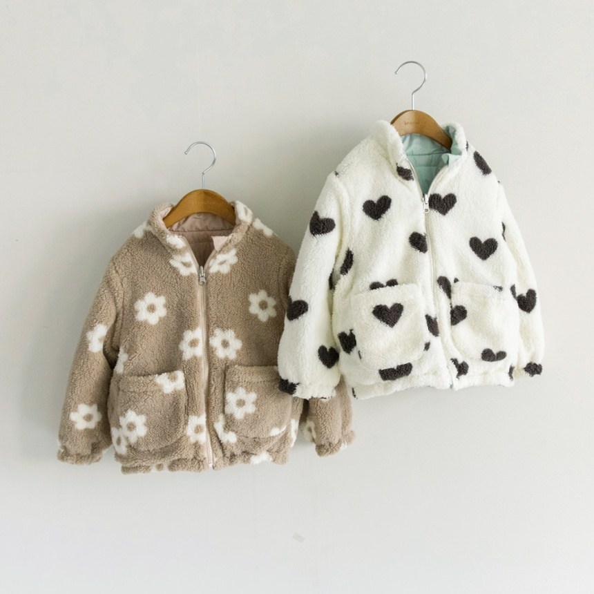 サックスはハート総柄のボア、ピンクはお花総柄のボア