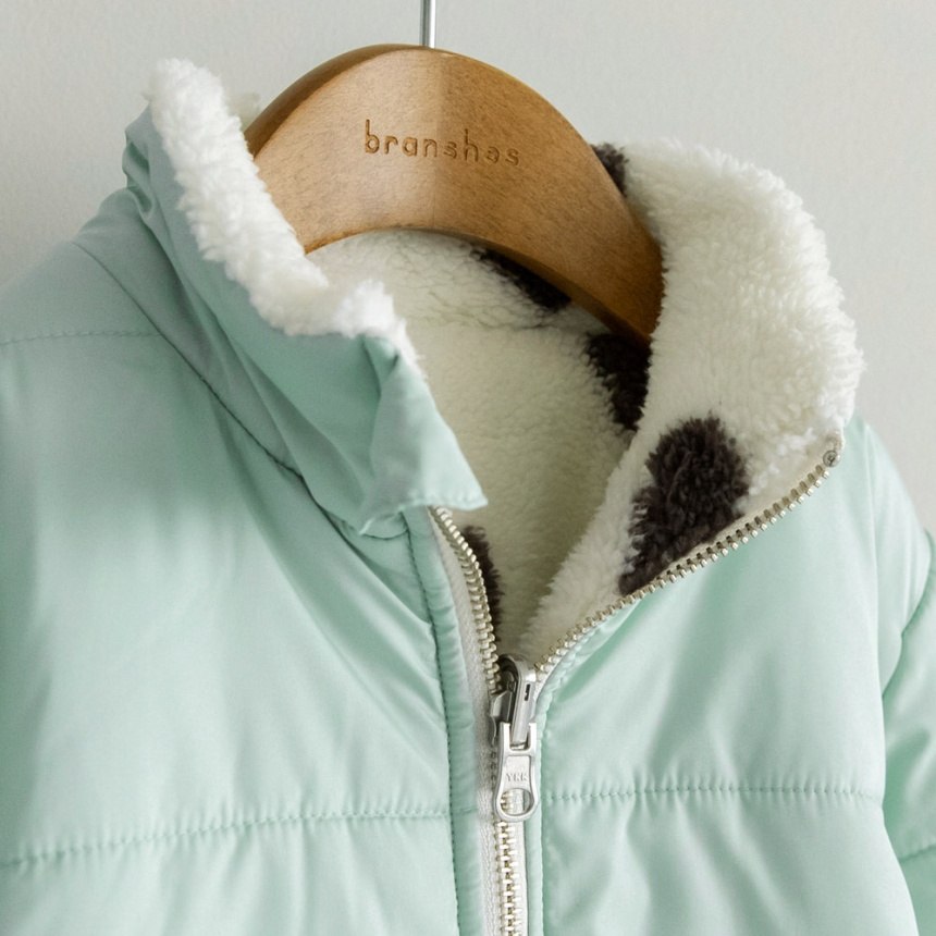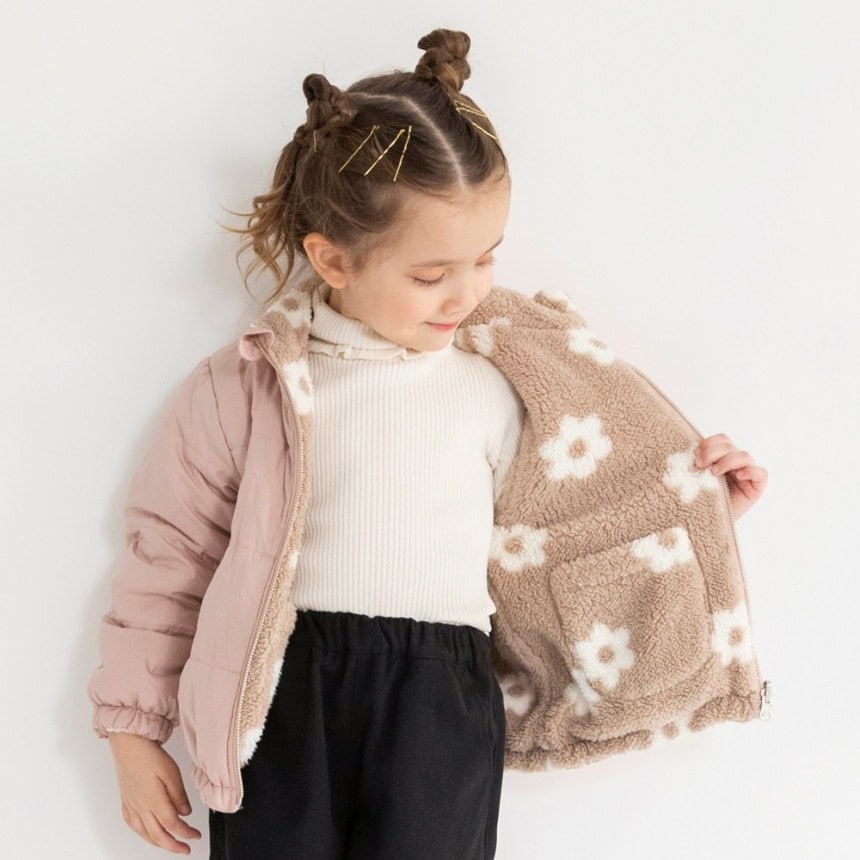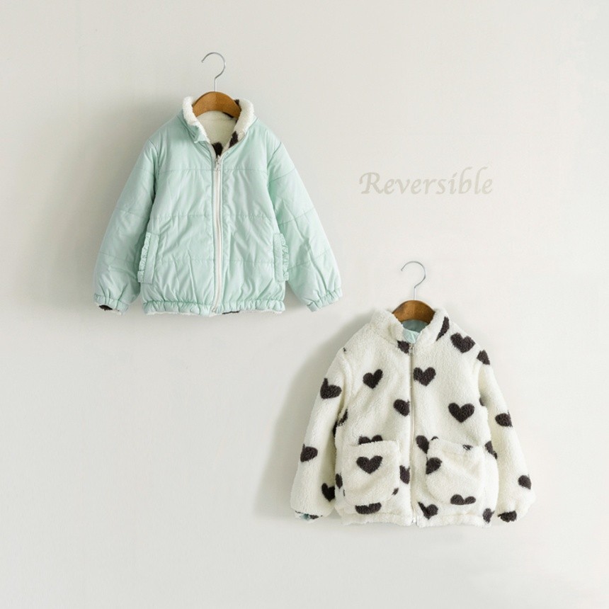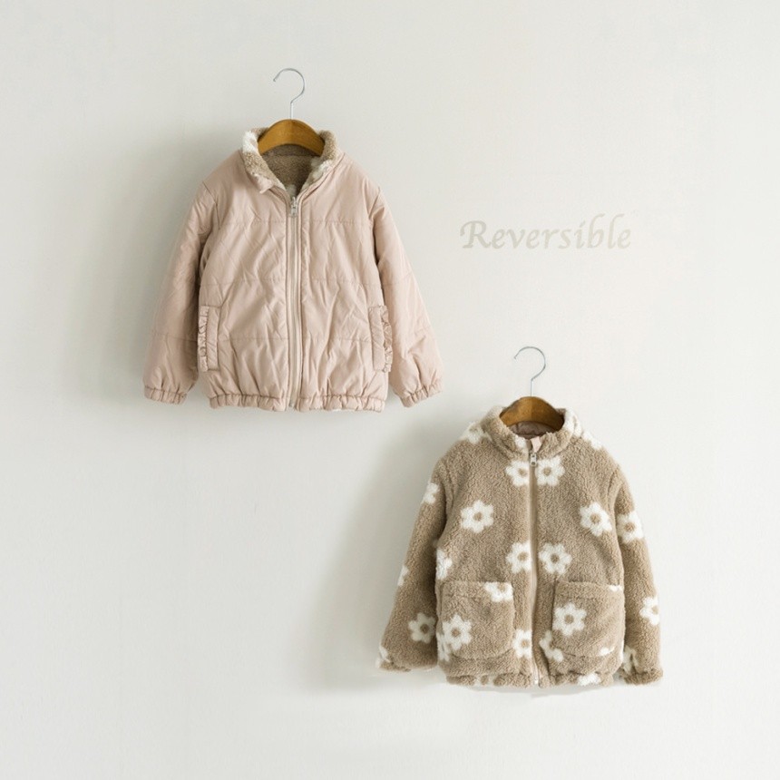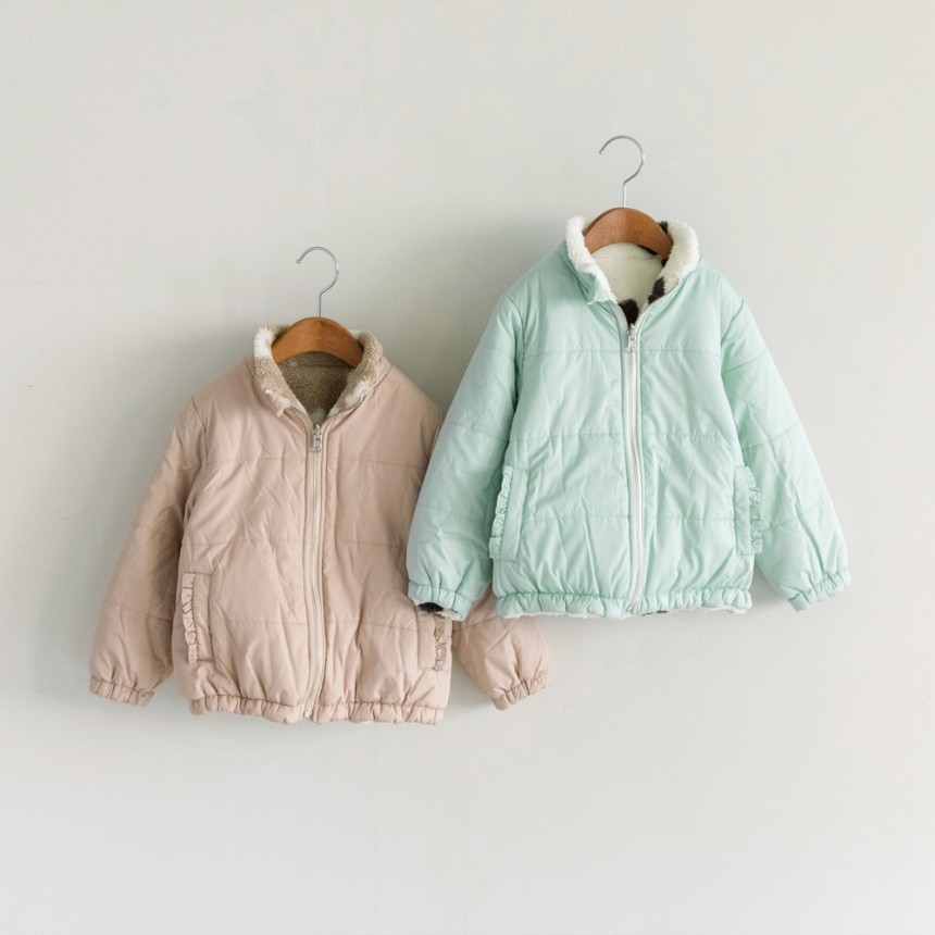 サックスはハート総柄のボア、ピンクはお花総柄のボア