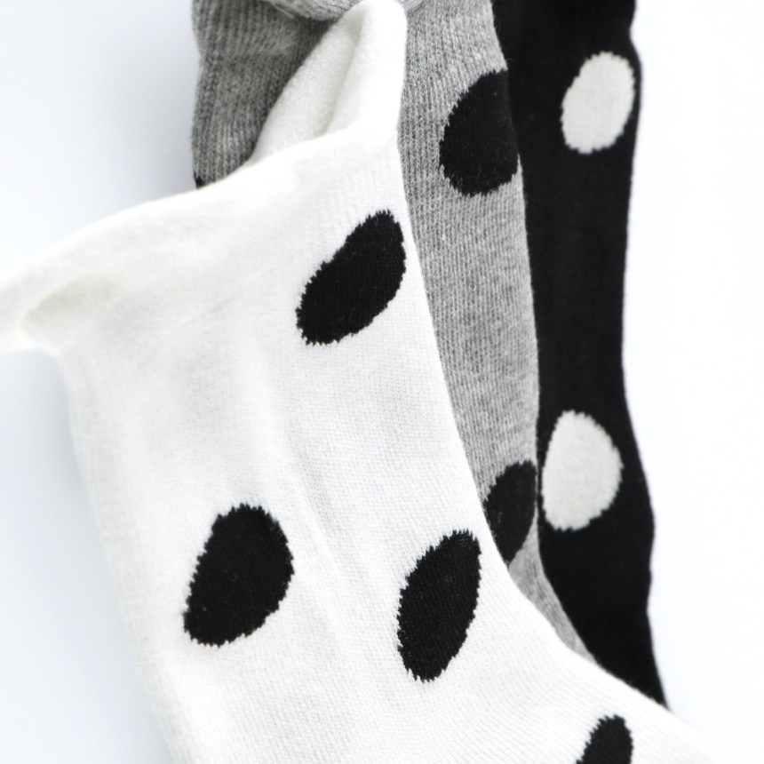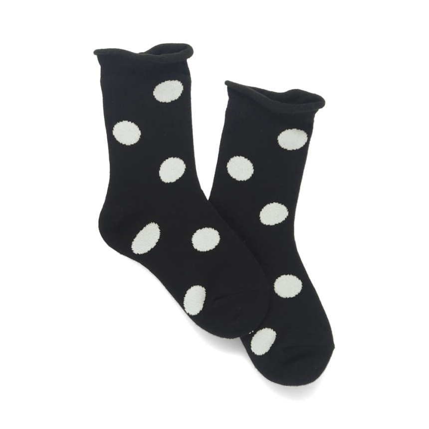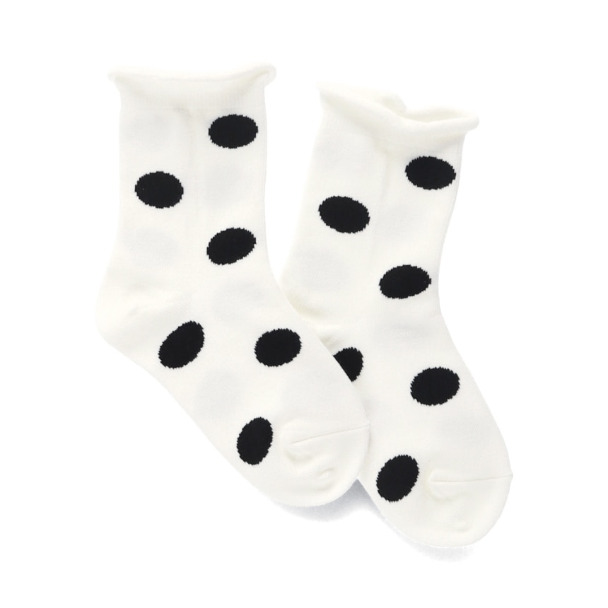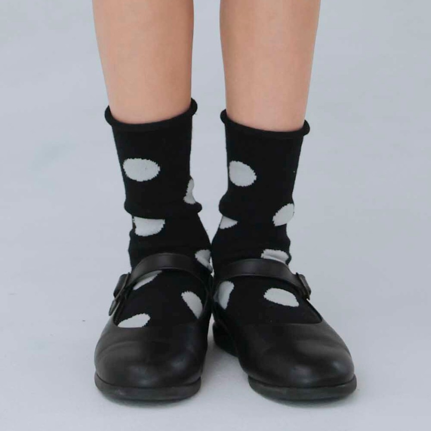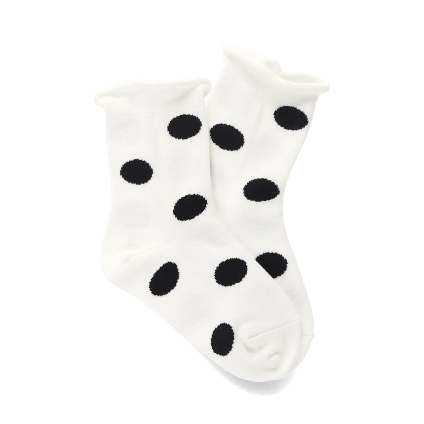 b.+Aのモノトーンコーデを引き立てるドットソックス。