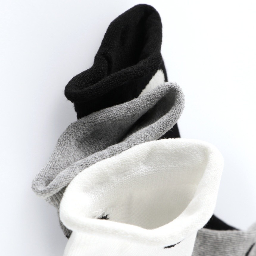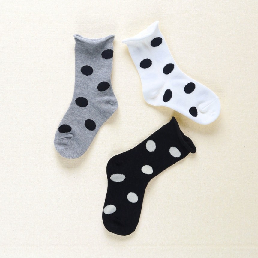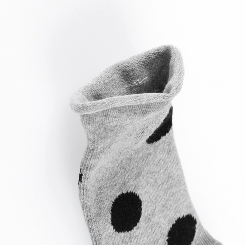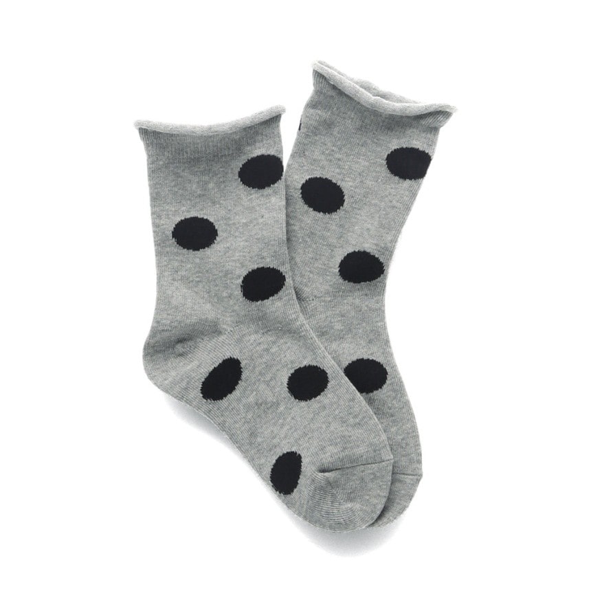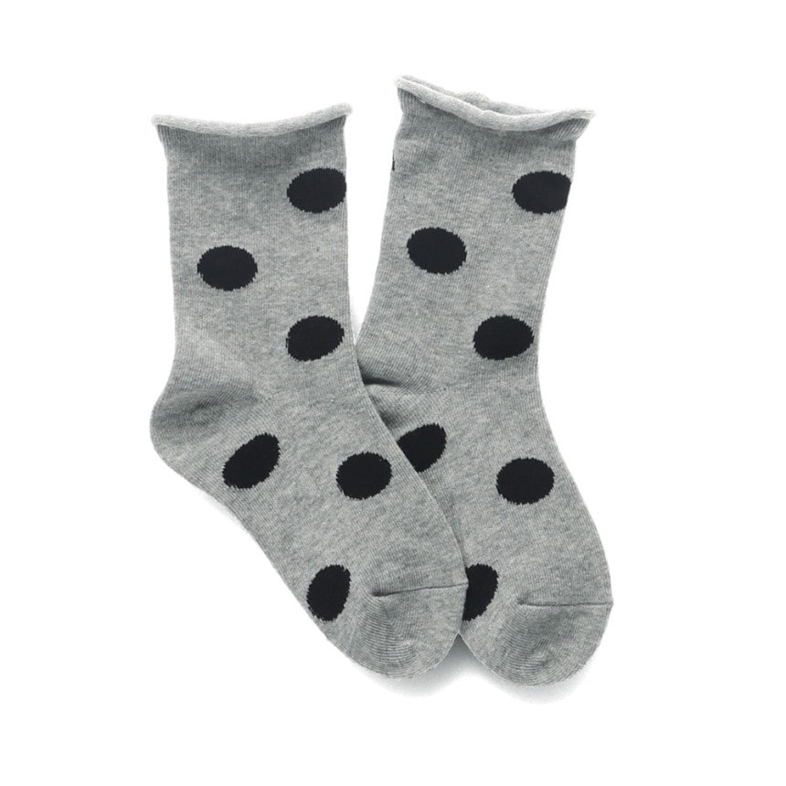 b.+Aのモノトーンコーデを引き立てるドットソックス。