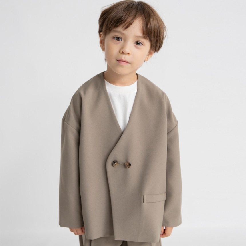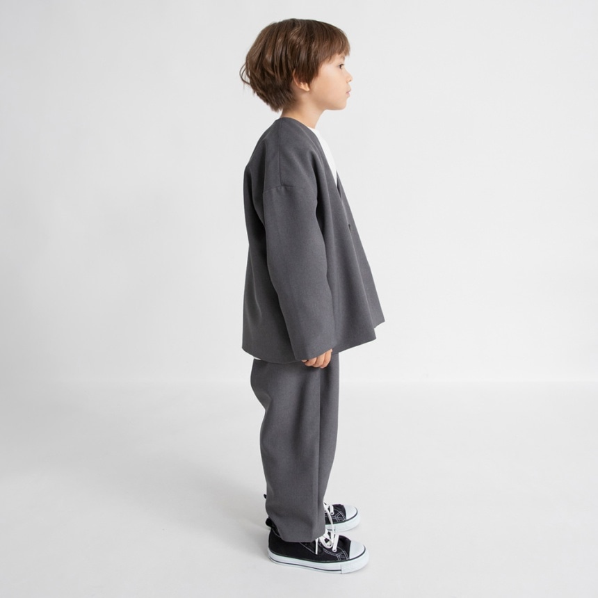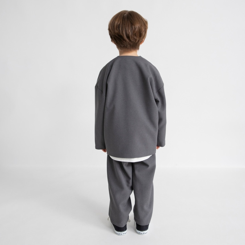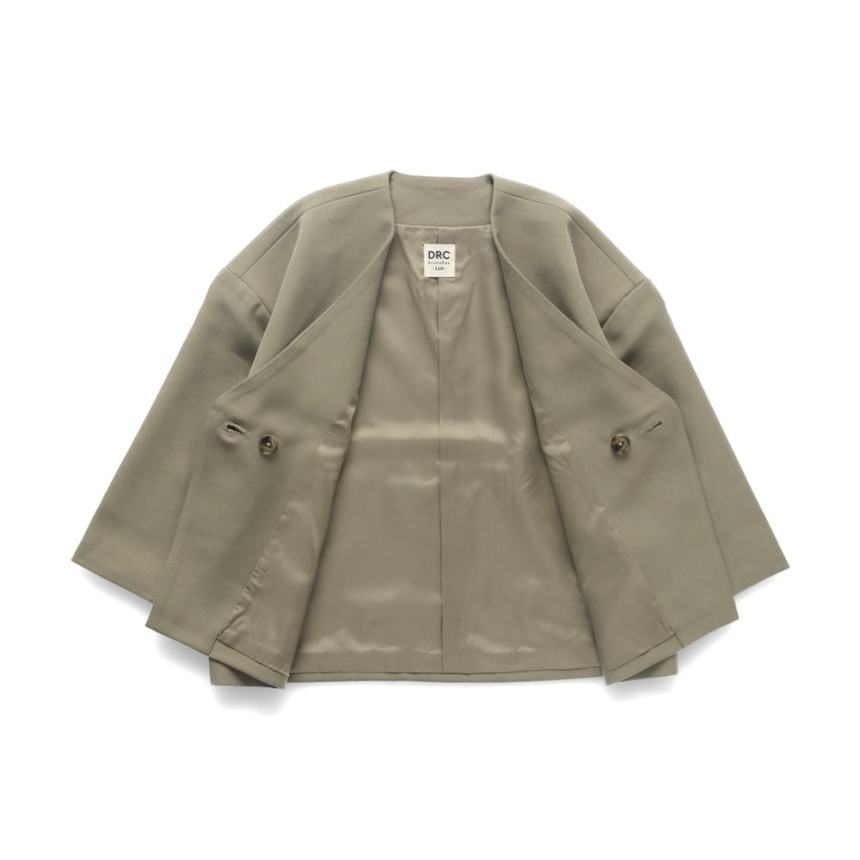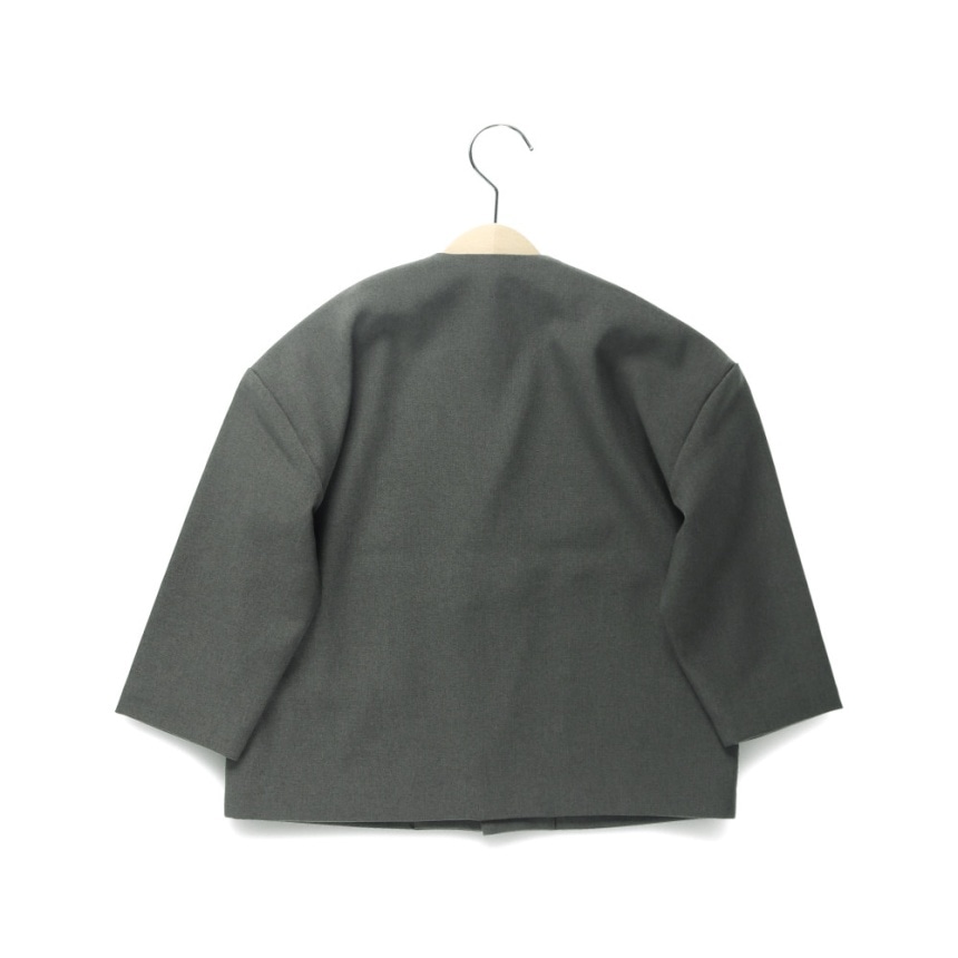 ゆったりとリラックス感のあるシルエットが特徴のノーカラージャケット