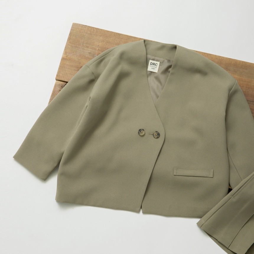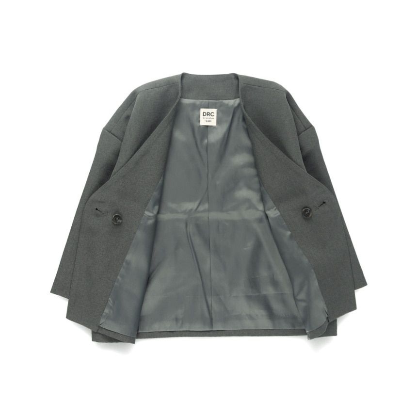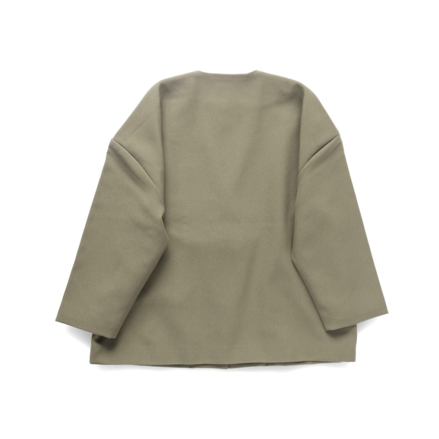 ゆったりとリラックス感のあるシルエットが特徴のノーカラージャケット