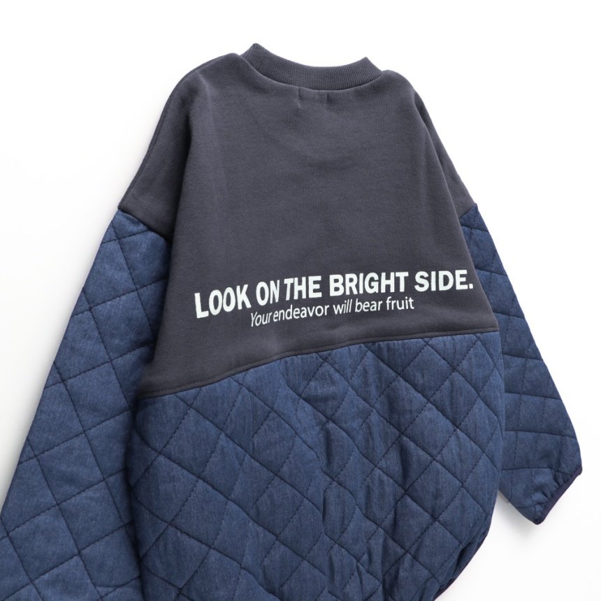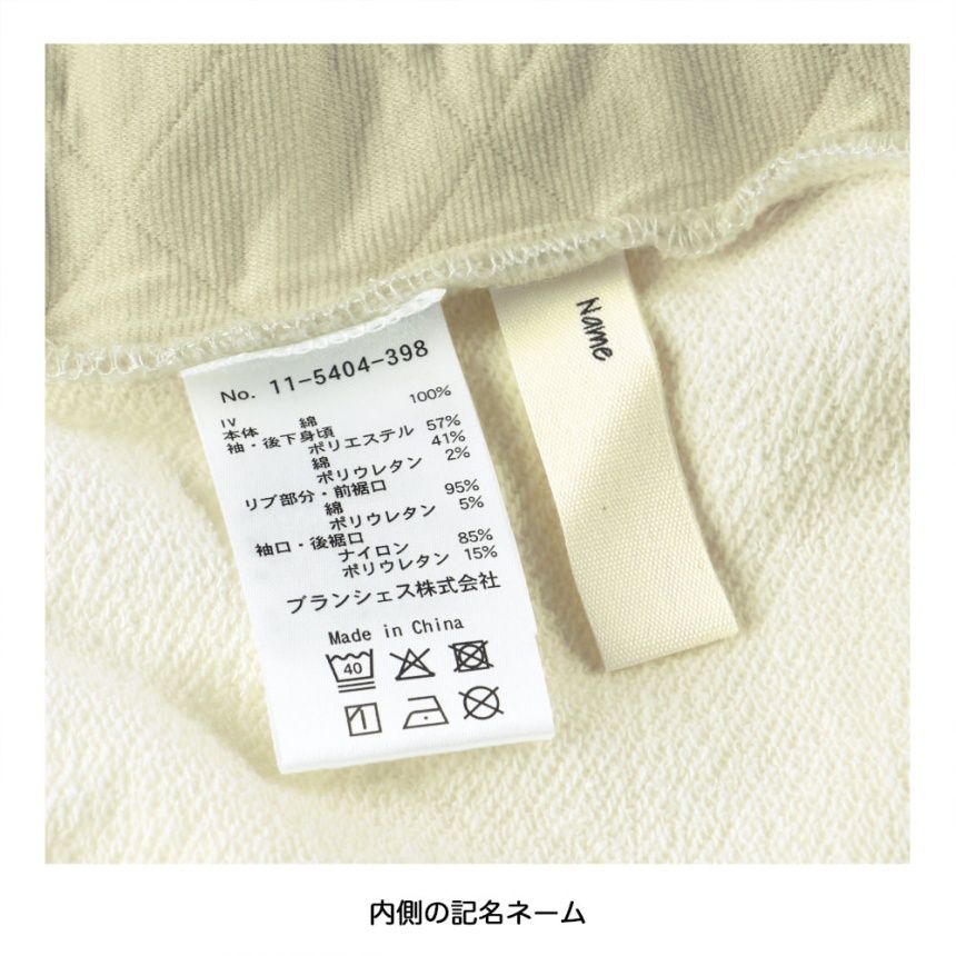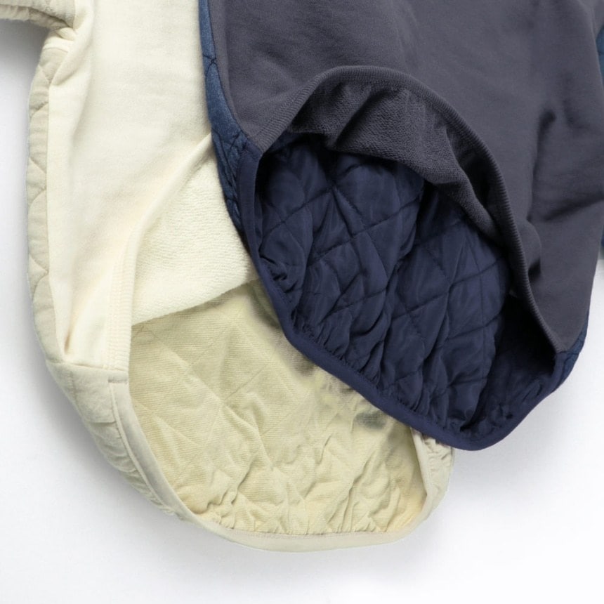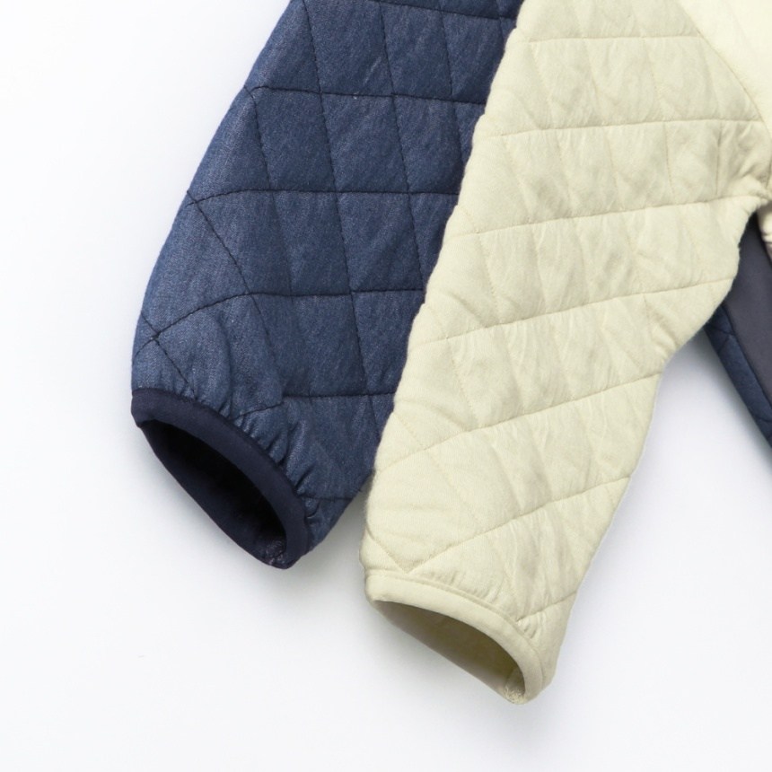 - 本体:綿100% 【袖・後下身頃】表地:綿100% 中綿・裏地:ポリエステル100% リブ部分・前裾口:綿95% ポリウレタン5% 袖口・後裾口:ナイロン85% ポリウレタン15%