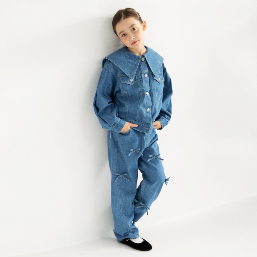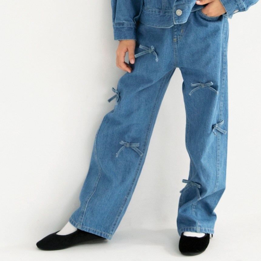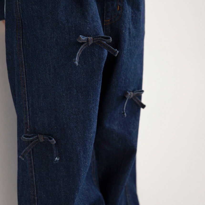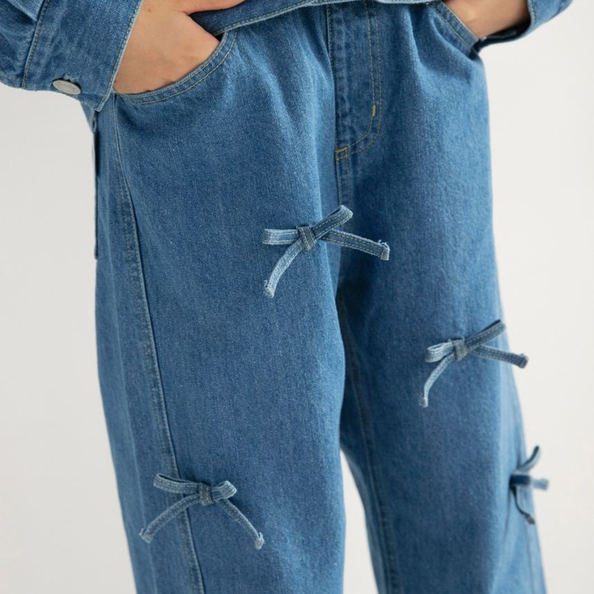 程よい厚みの9オンスデニムで、立体リボンがデザインの