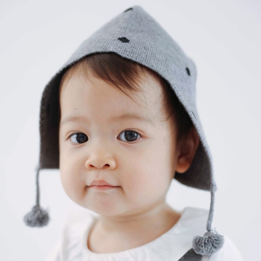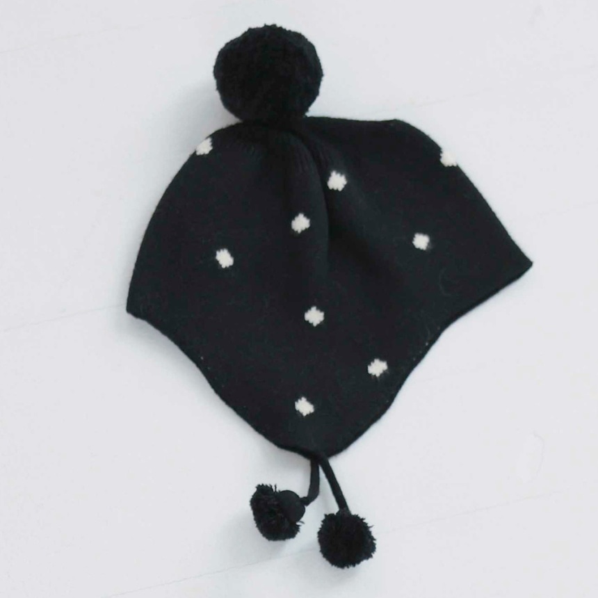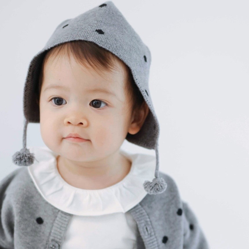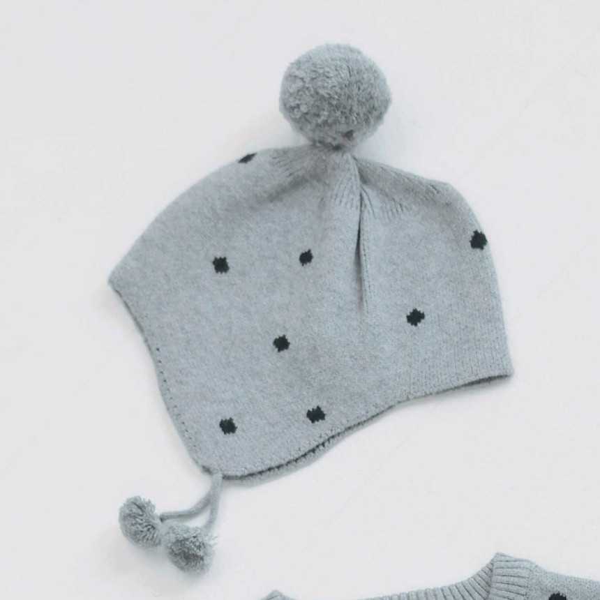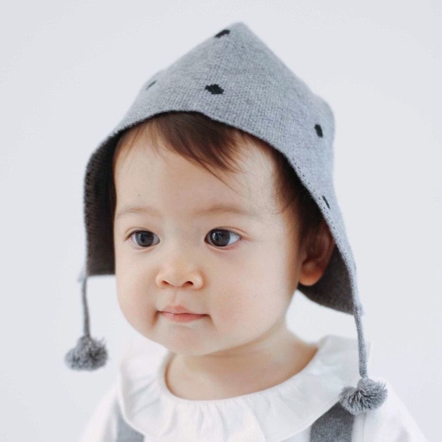 小さめドット柄が上品でかわいいベビーニット帽