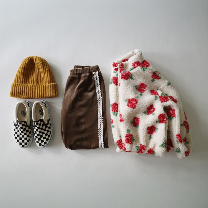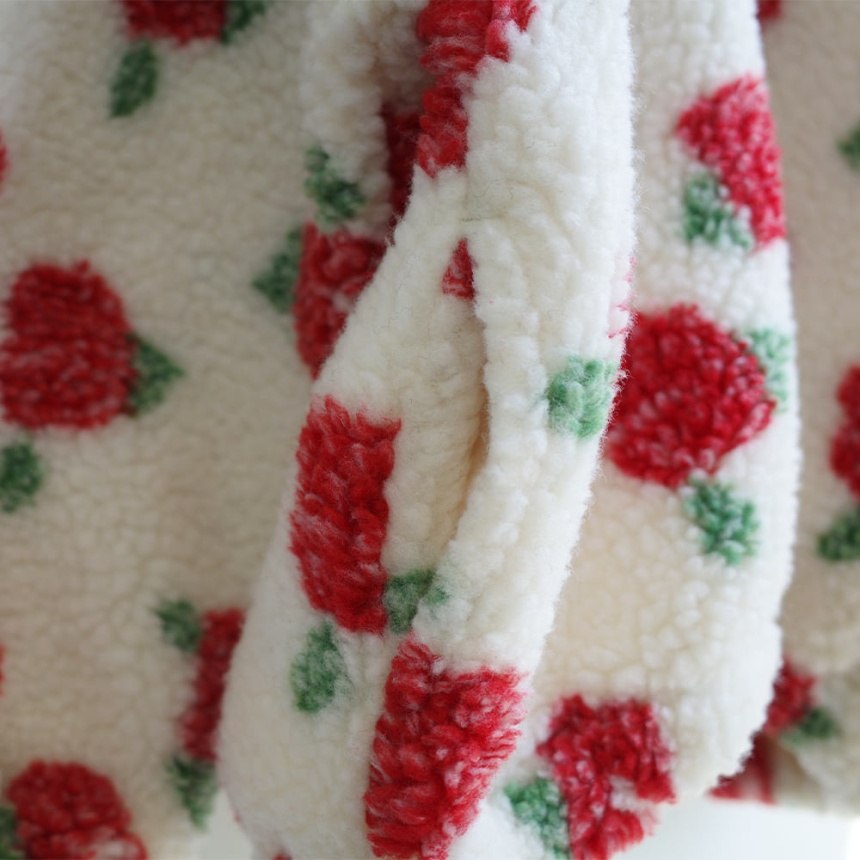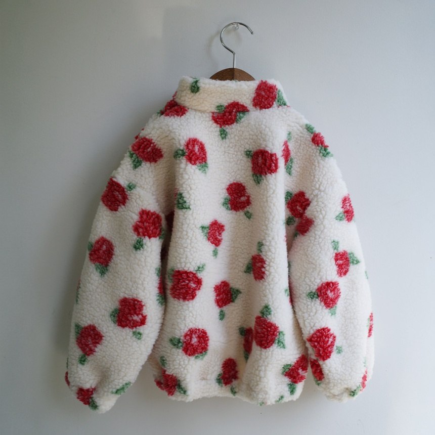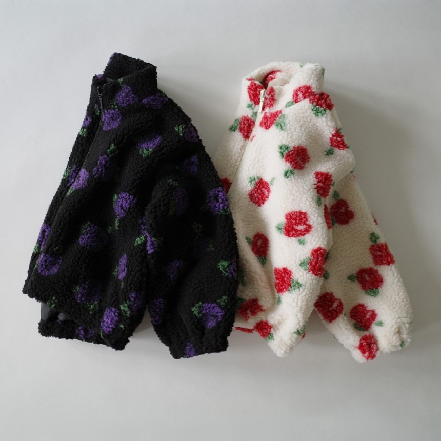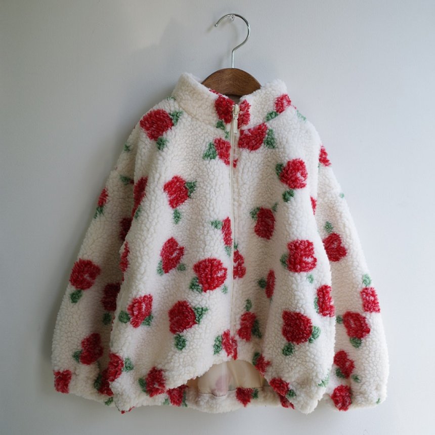ビビッドカラーの花柄がキャッチーなボア生地を使用したジャケットは