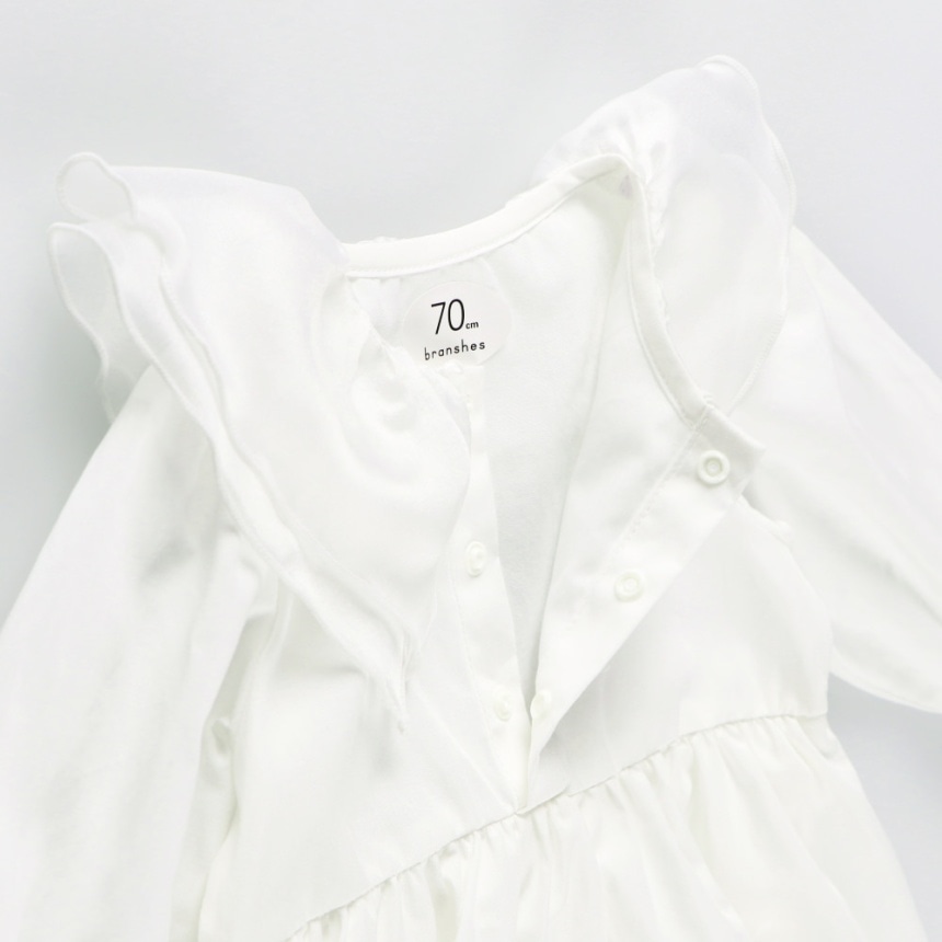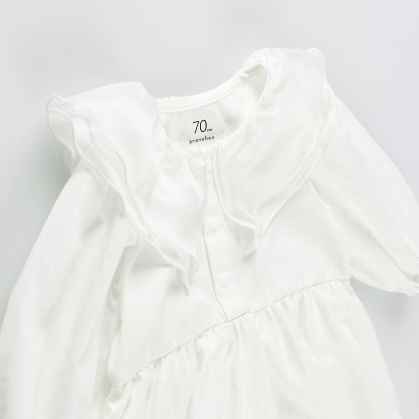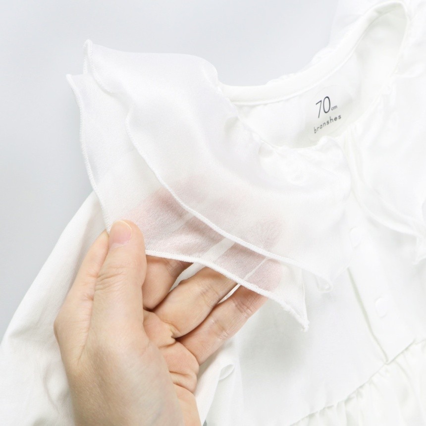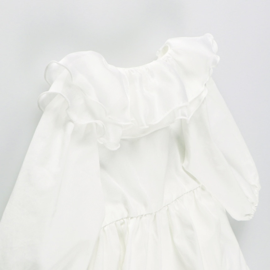襟にはギャザーを寄せて、ほどよいボリューム感を演出