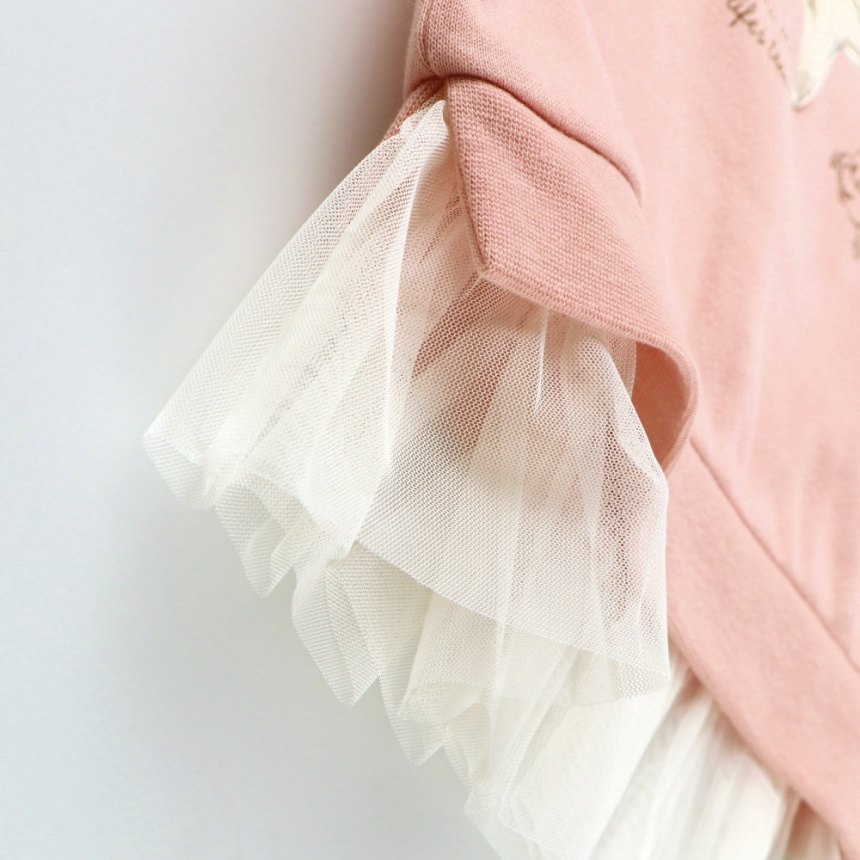 裾にはチュールをあしらい、ガーリーな雰囲気をプラス