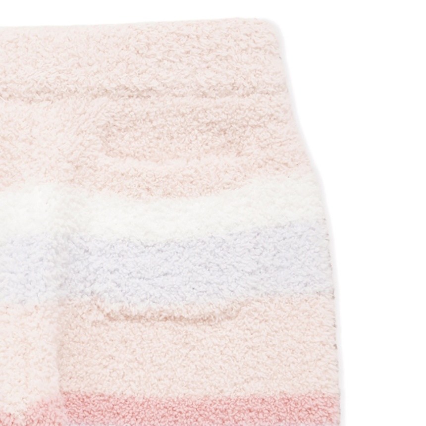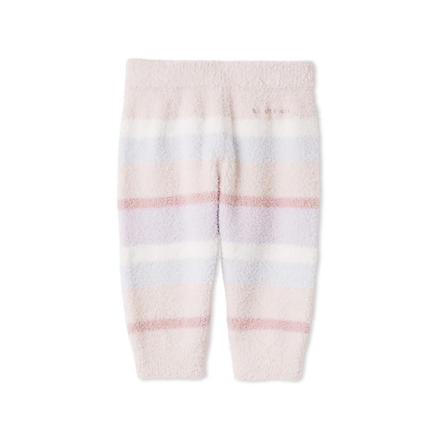 キャンディのようなカラフルなボーダー柄が幸せ気分を演出する、親子でお楽しみいただける’ベビモコ’シリーズです。ふっくら軽いはき心地のBABYサイズのロングパンツ。裾を絞った動きやすいシルエットで、お休みの際にも裾がまくれにくいのがポイントです。季節の変わり目から春先までロングシーズンでお楽しみいただける1枚。左腰にロゴ刺繍も入れました。