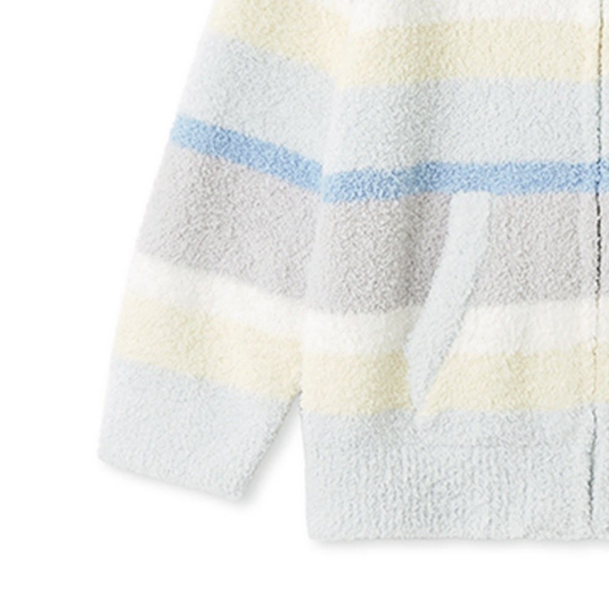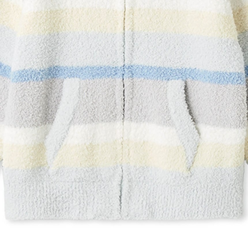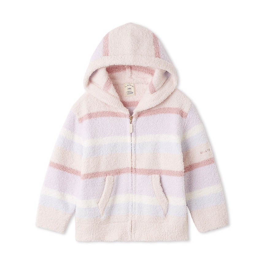 キャンディのようなカラフルなボーダー柄が幸せ気分を演出する、親子でお楽しみいただける’ベビモコ’シリーズです。ふっくら軽い着心地のKIDSサイズのパーカは、これからの季節の羽織りに重宝するアイテム。季節の変わり目から春先までロングシーズンでお楽しみいただける1枚です。フロントポケット付きで、左袖にロゴ刺繍も入れました。色はピンクとブルーの2色展開。