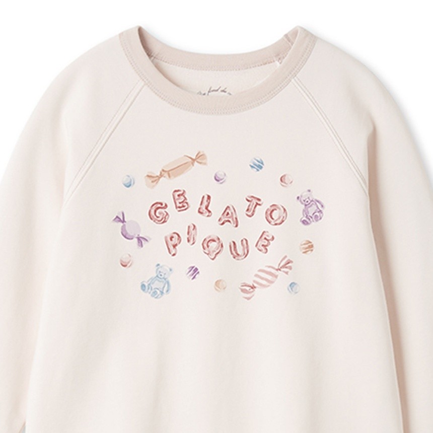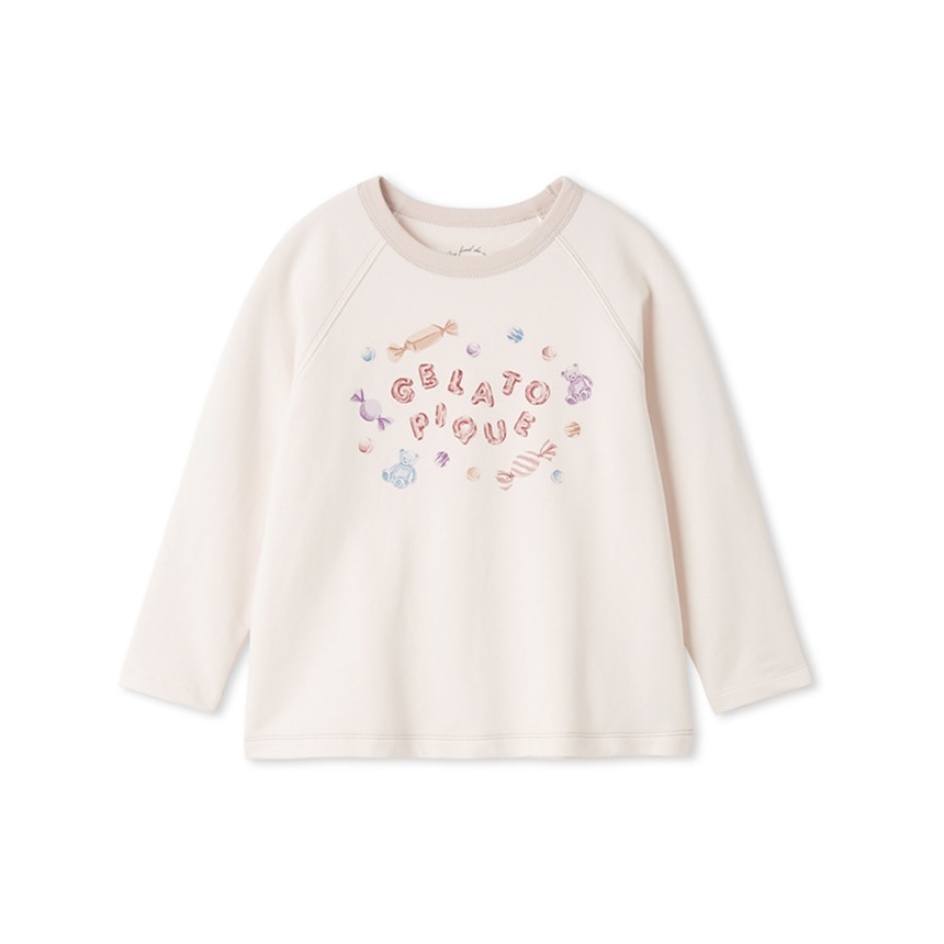 gelato piqueらしいベアやロゴモチーフのカラフルなキャンディを散りばめた、HAPPYなプリントのKIDSロングTシャツです。程良くふっくらとしたコットン混のインレイ素材を使用し、ゆったりとしたラグランスリーブで動きやすく仕上げました。首元の配色デザインがポイントです。