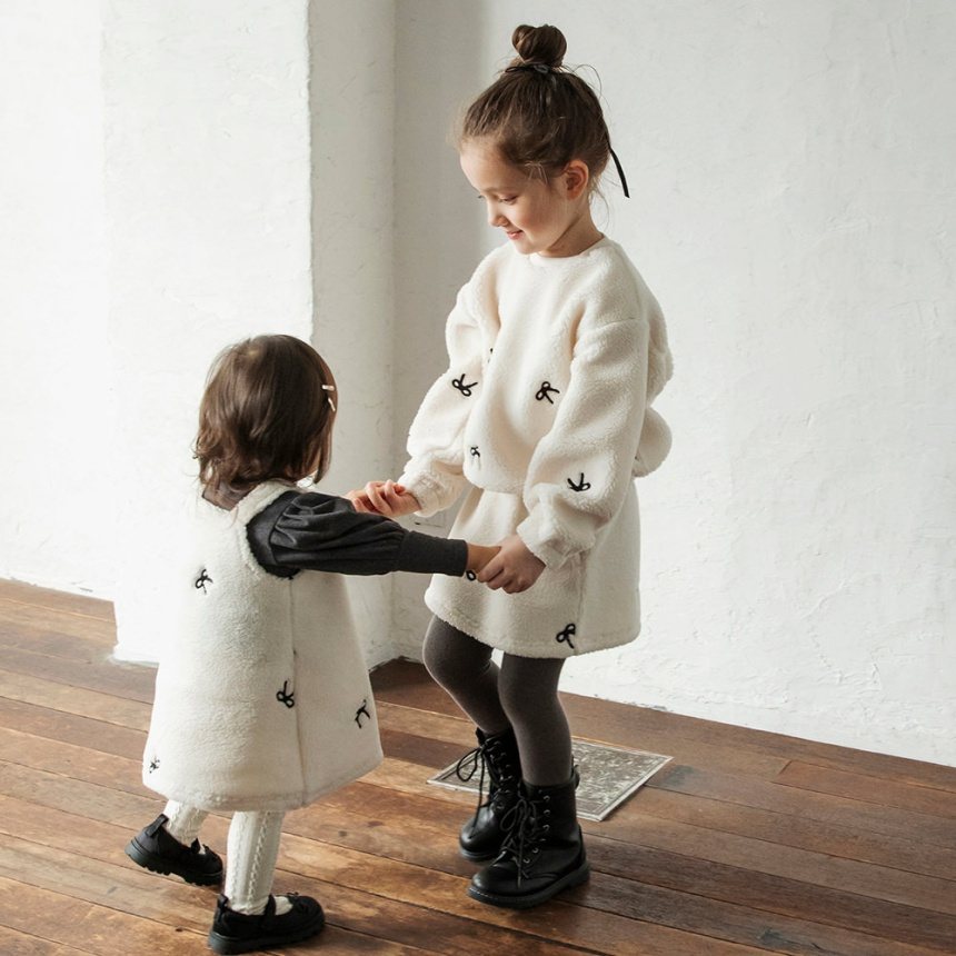 02-5435-025 リボン総柄刺しゅうボアジャンパースカート