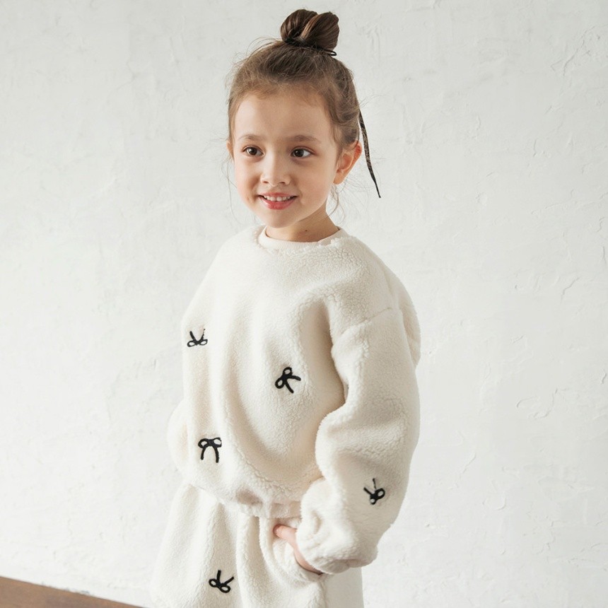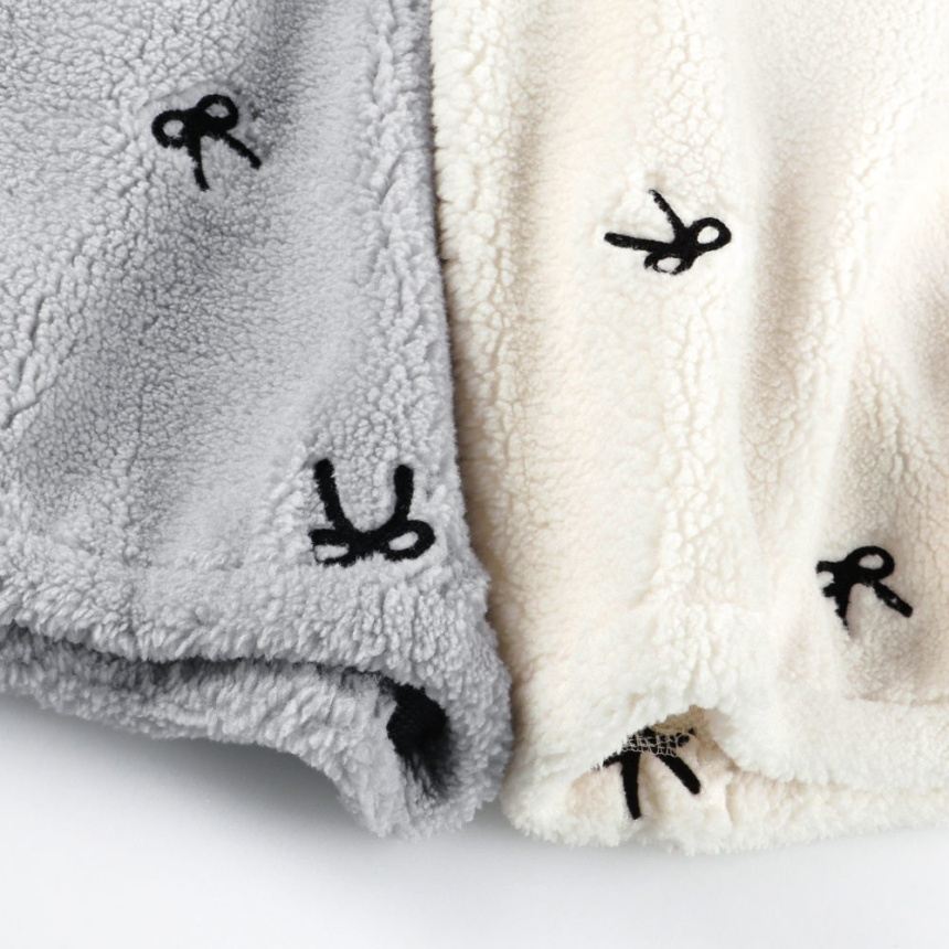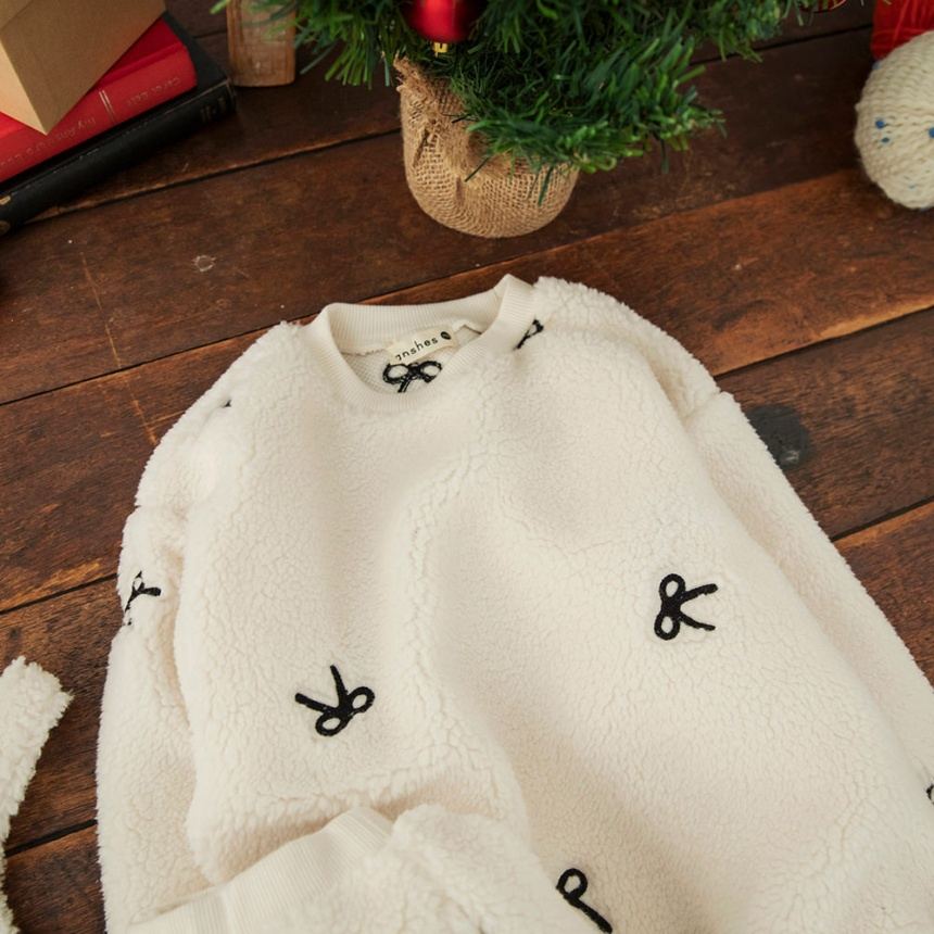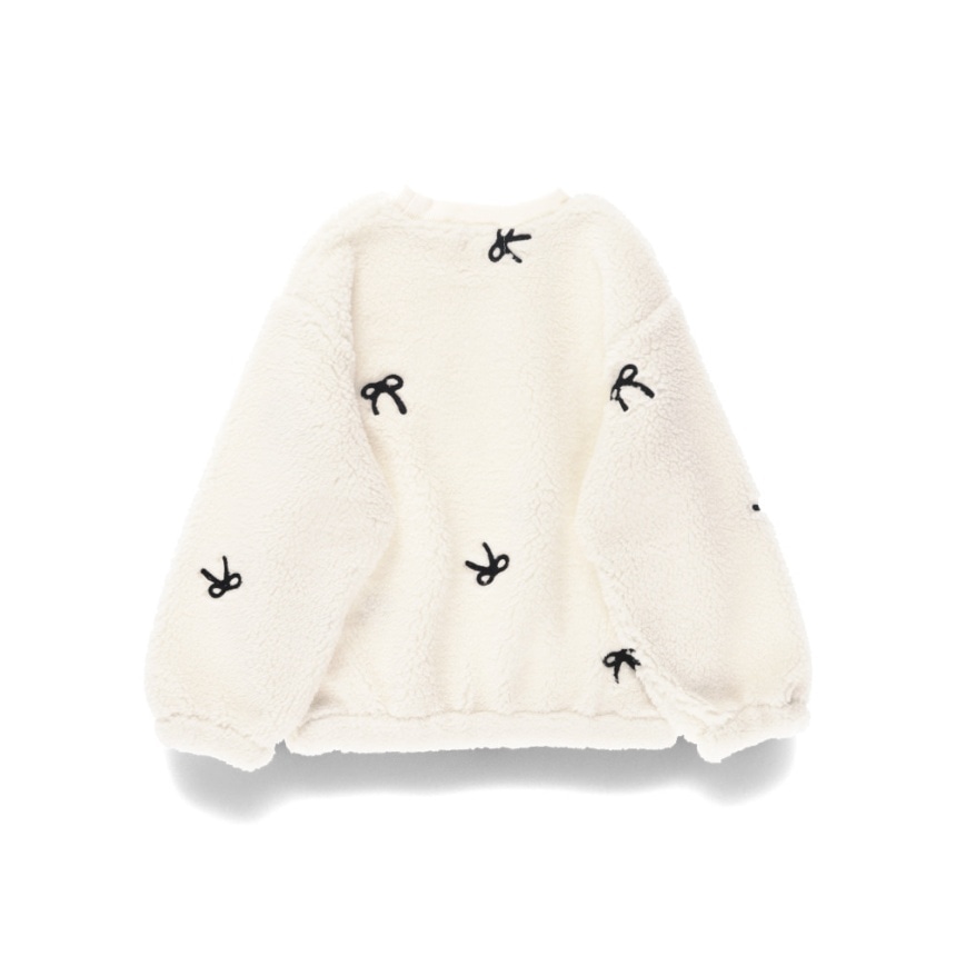 リボン総柄刺しゅうボアトレーナー