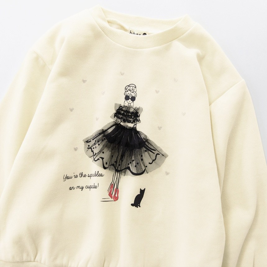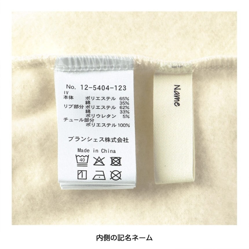 - 【アイボリー】本体:ポリエステル65% 綿35% リブ部分:ポリエステル62% 綿33% ポリウレタン5% チュール部分:ポリエステル100%【サックス】本体:ポリエステル65% 綿35% リブ部分:ポリエステル62% 綿33% ポリウレタン5% アップリケ:ポリエステル100%