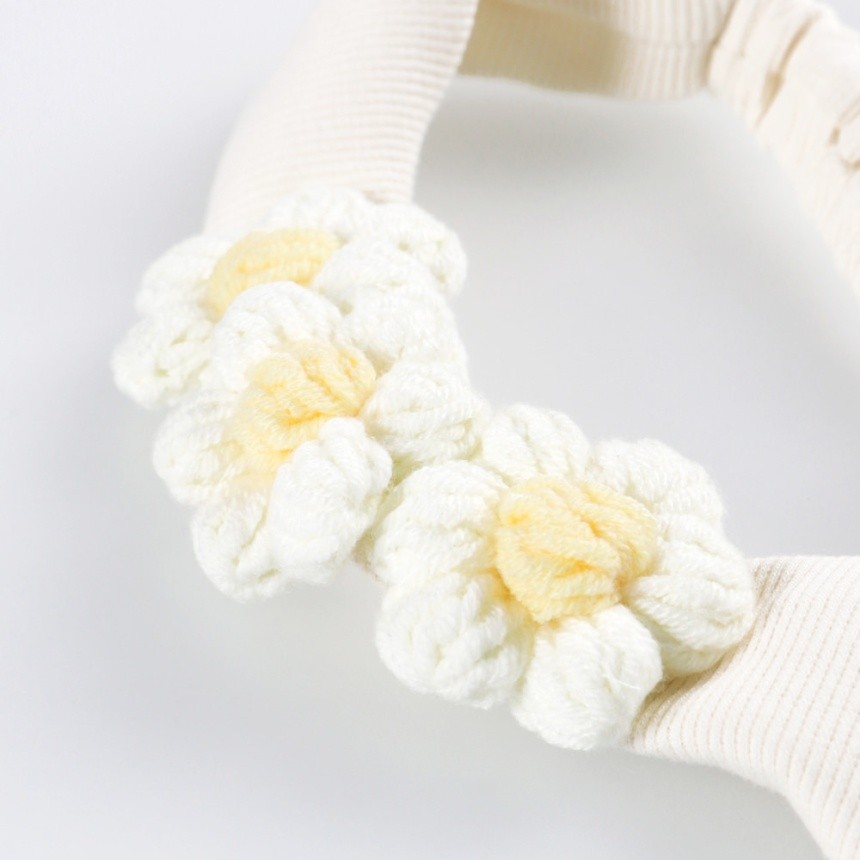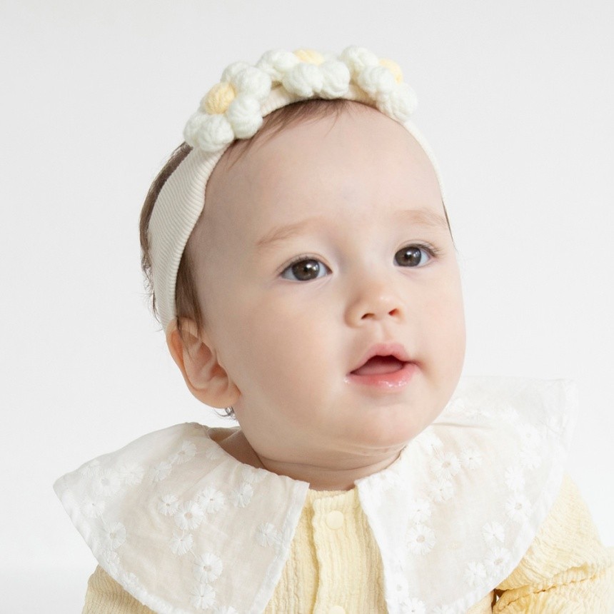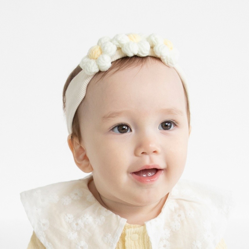 お花モチーフ付きで、お子様の頭回りを華やかにしてくれます