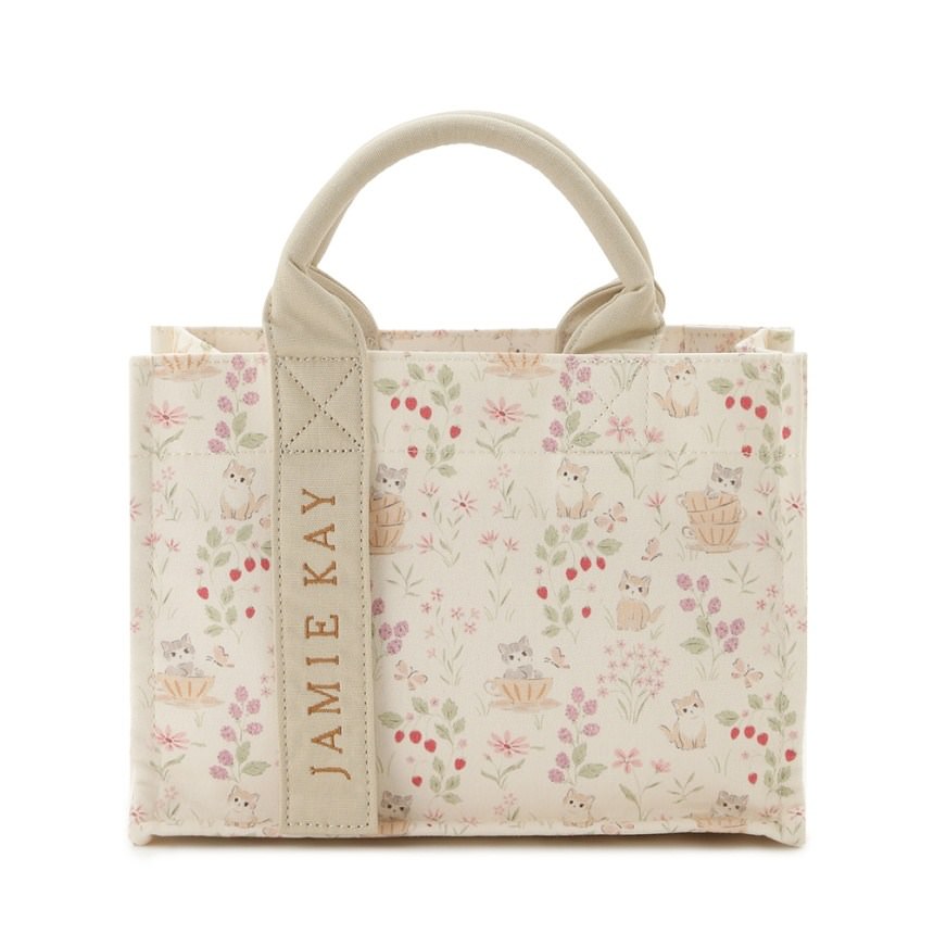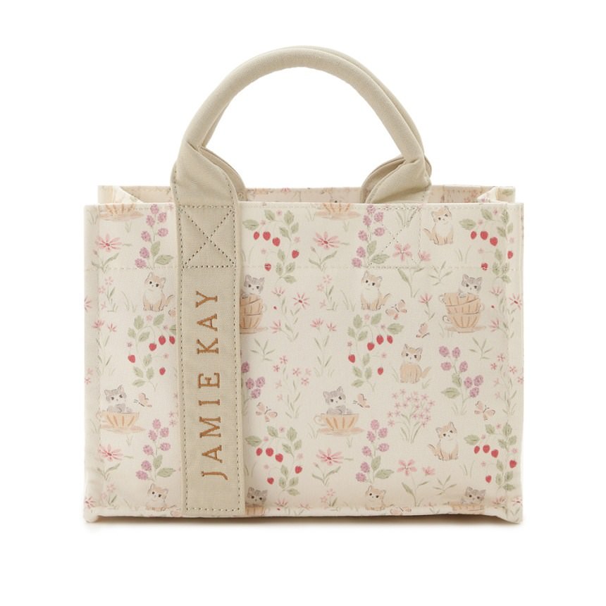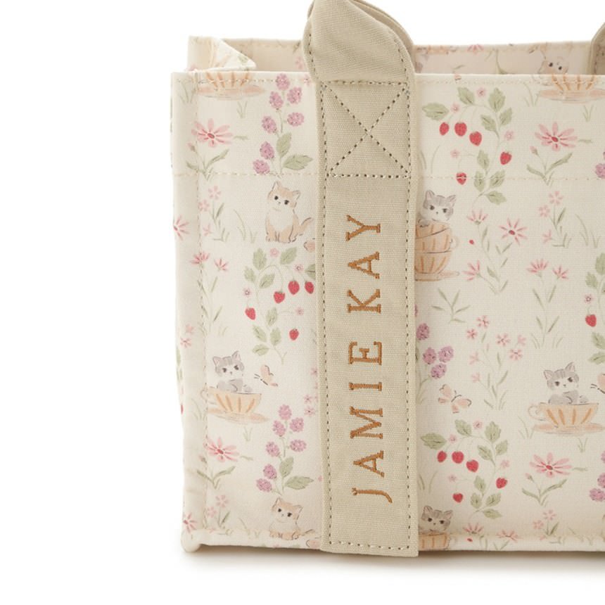 持ち手のデザインも個性的でJAMIE KAYの刺しゅうがぐっとオシャレ感を際立たせています。