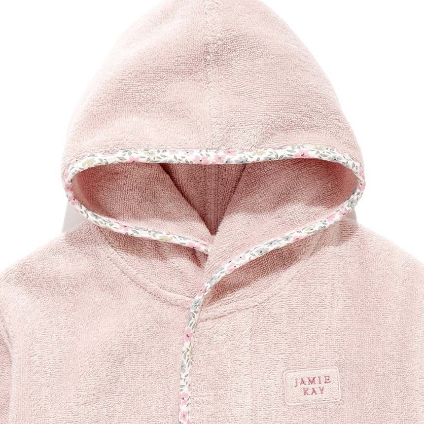 オフホワイトにはフードにクマ耳を、ピンクにはFIFI MINI SLIGHTLY PINK柄を使用したパイピングがポイント。
