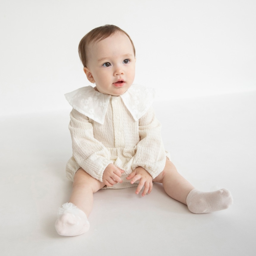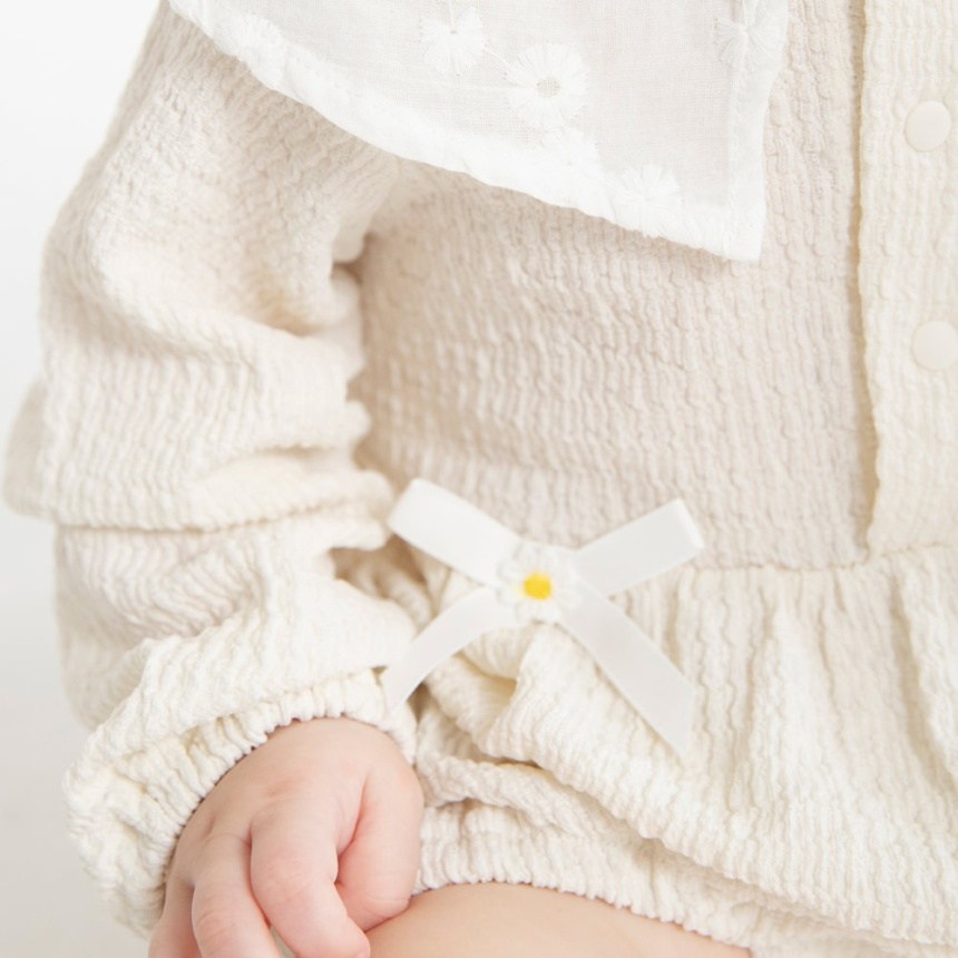 ウエストにはリボンをプラスし、ベビーちゃんの可愛らしさを引き立ててくれます