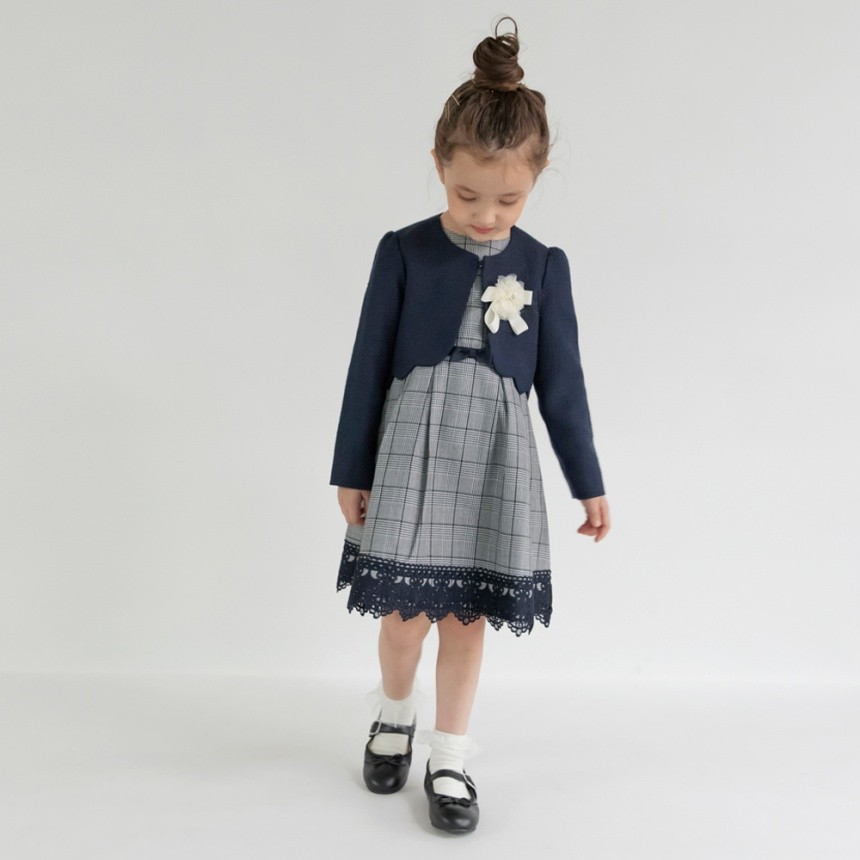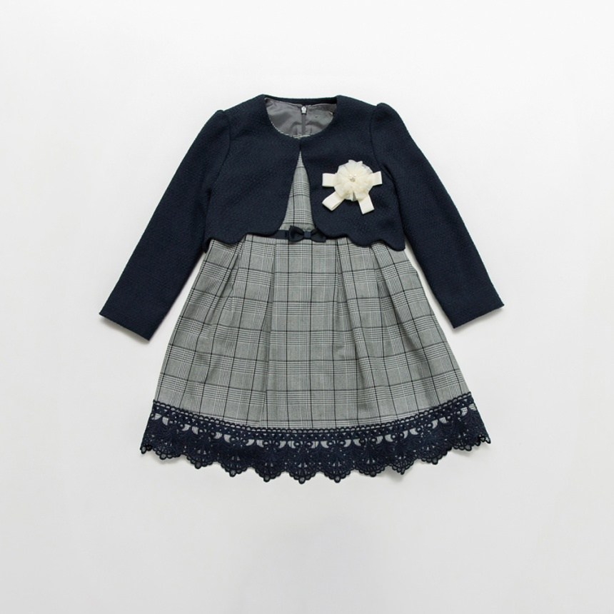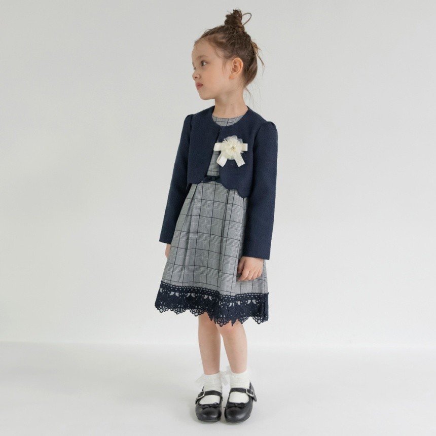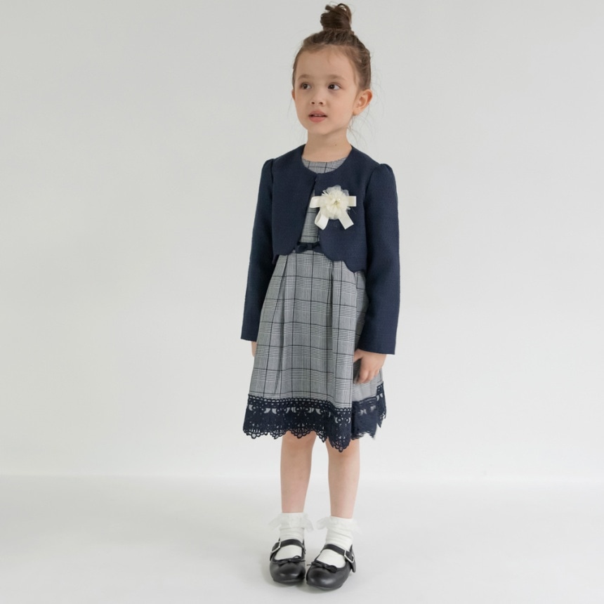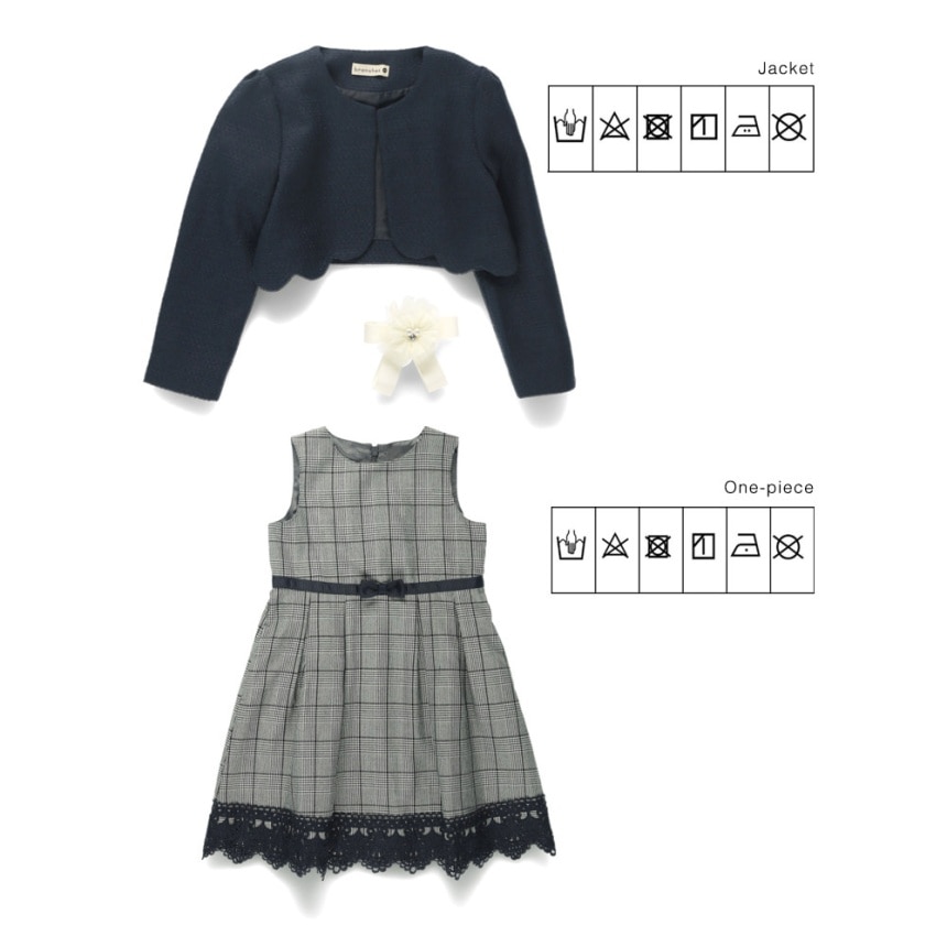 - > 【予約商品】【フォーマル】ジャケット+グレンチェックジャカードワンピース+コサージュ 3点セット