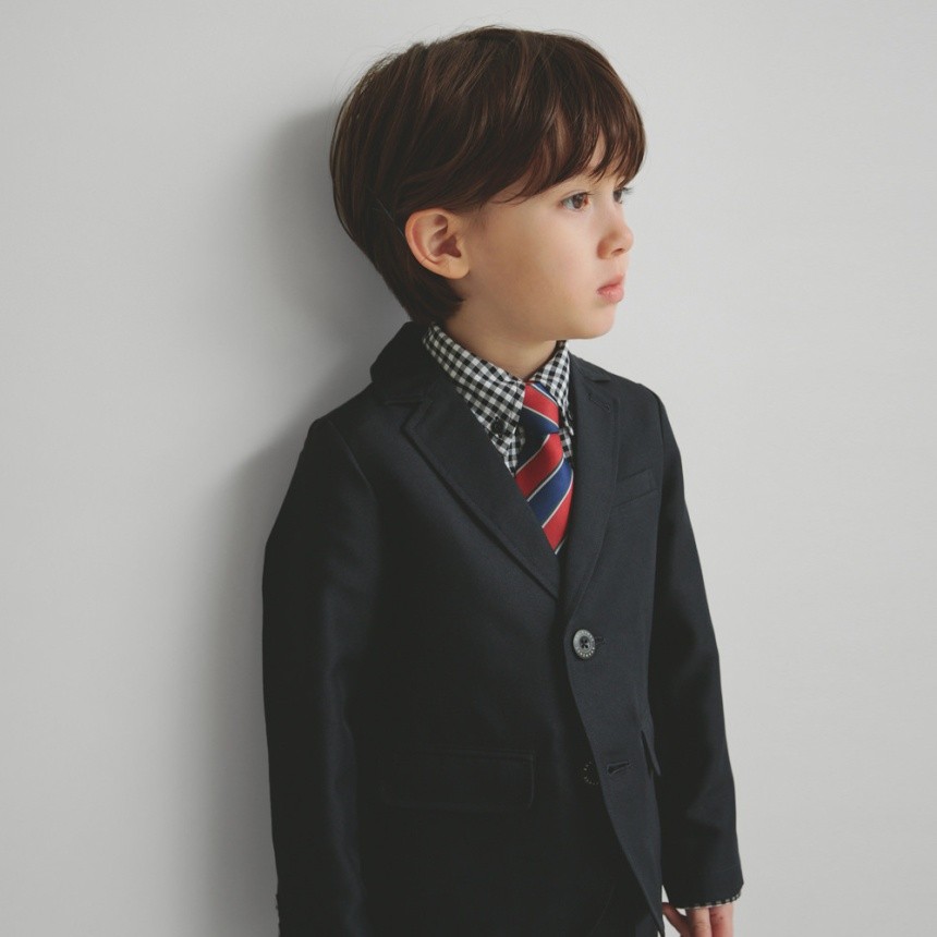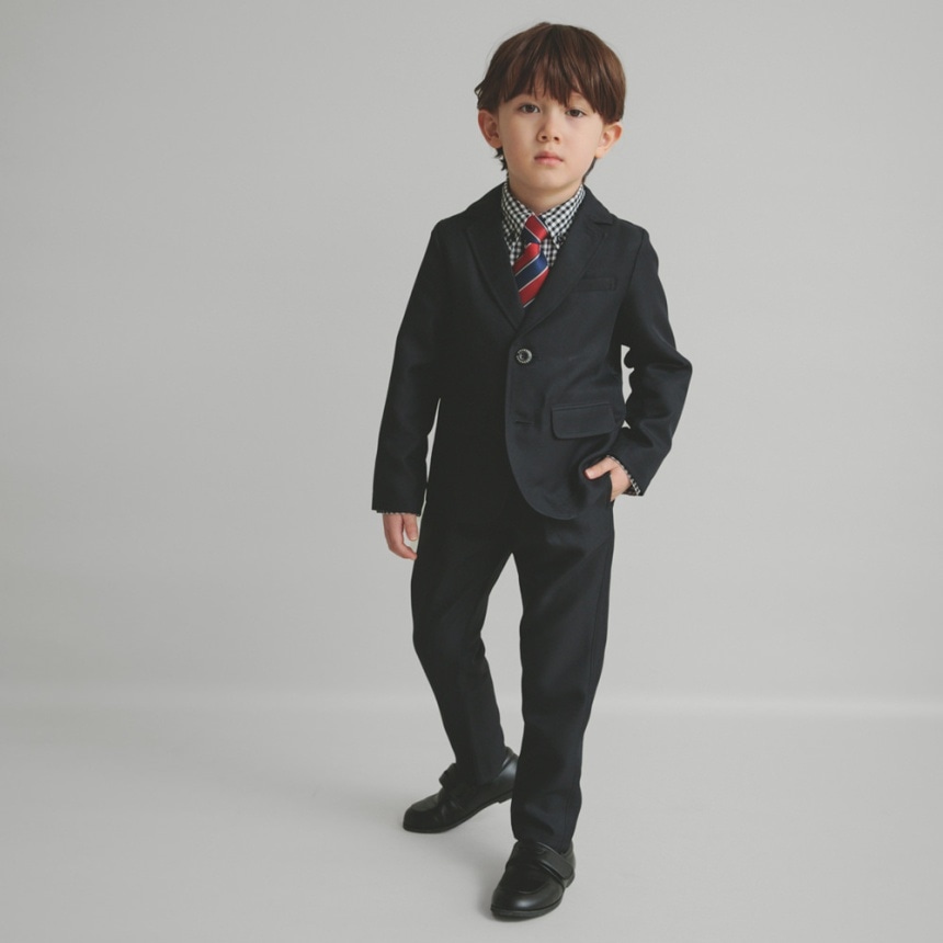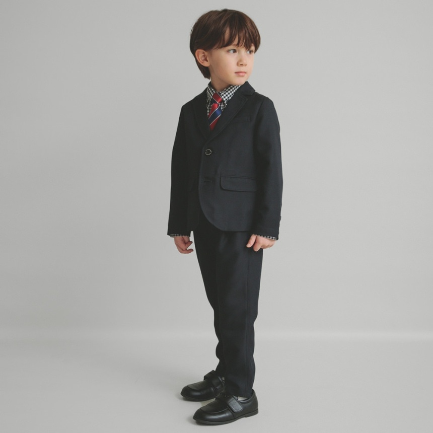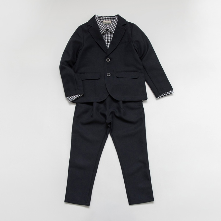 【予約商品】【フォーマル3点セット】ネイビージャケット+ロングパンツ+ギンガムシャツ
