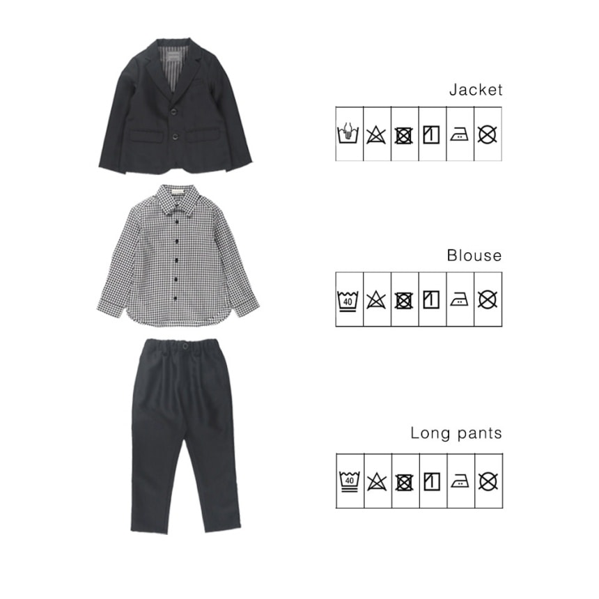 - 【ジャケット】本体:ポリエステル100% 裏側:ポリエステル100% 【ブラウス】綿100% 【ロングパンツ】ポリエステル100%
