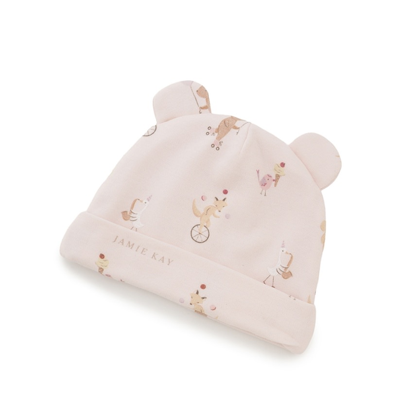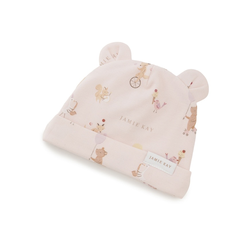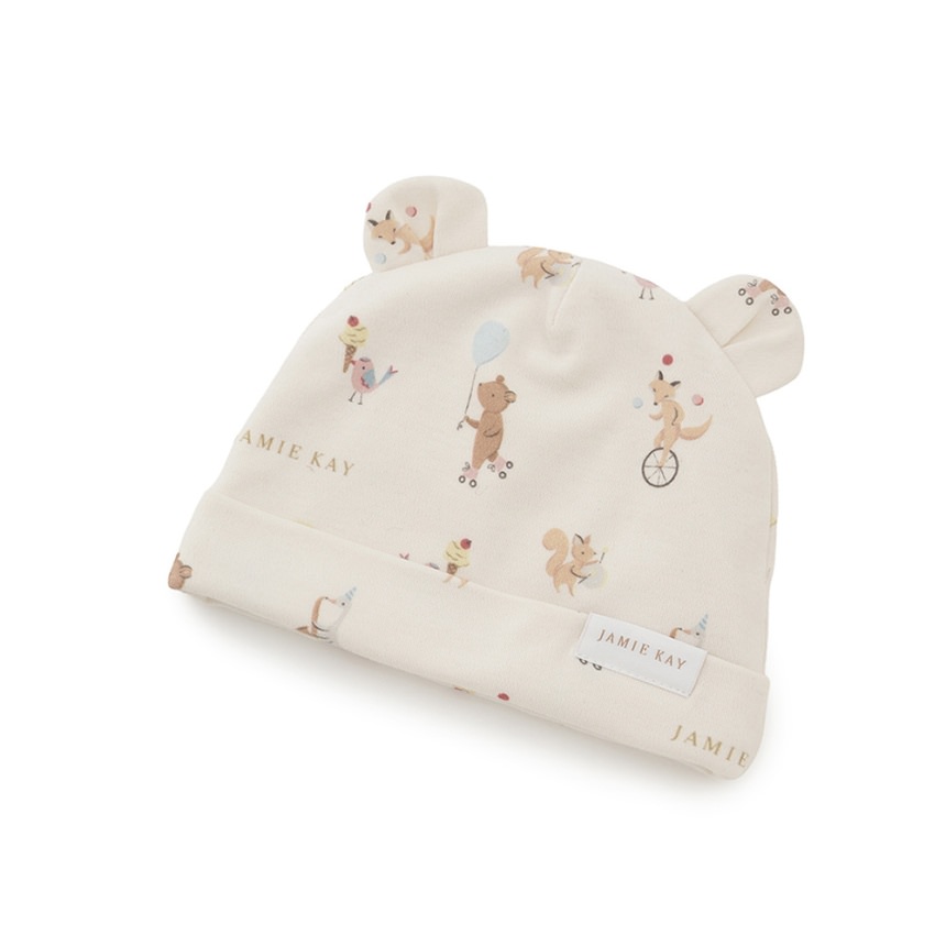 - > 【JAMIE KAY(ジェイミーケイ)】パレード柄くま耳キャップ/オーガニックコットン_
