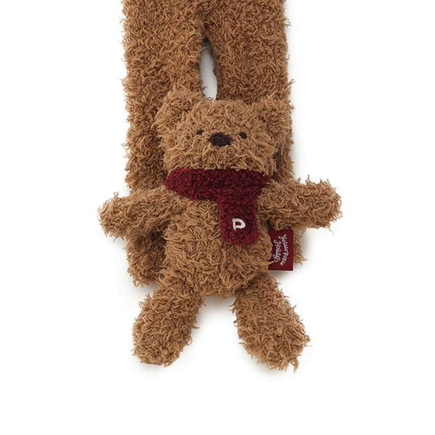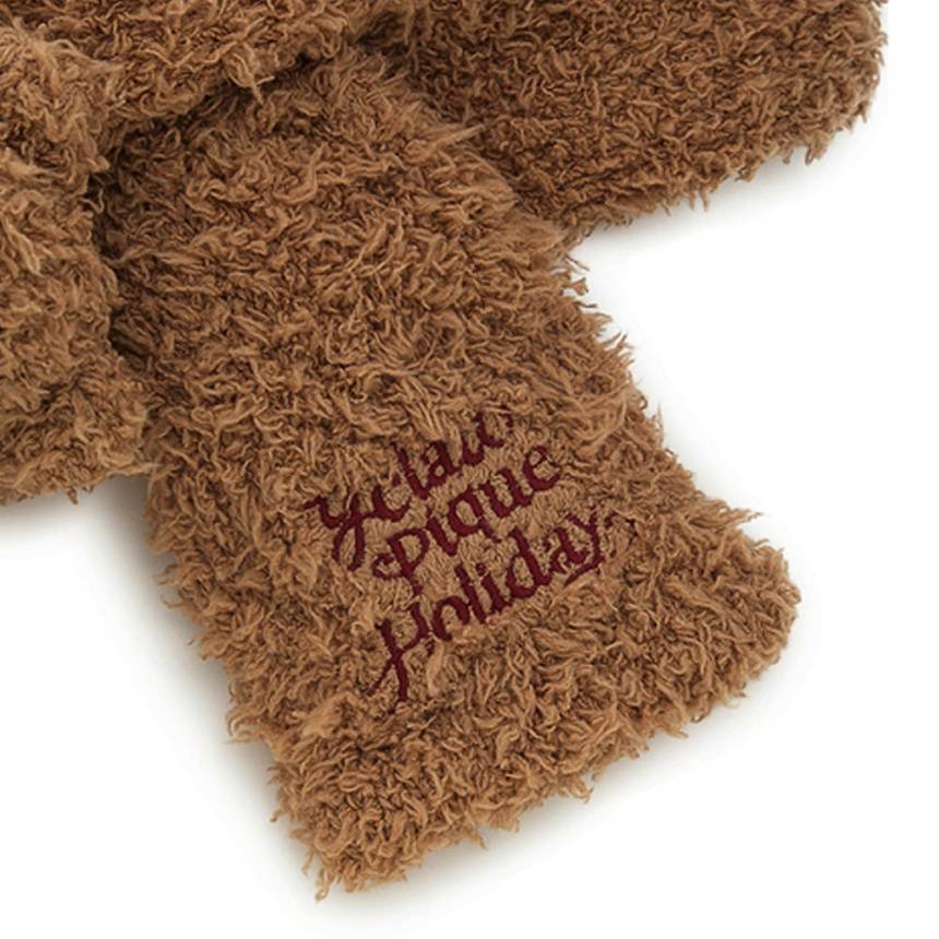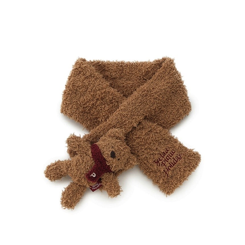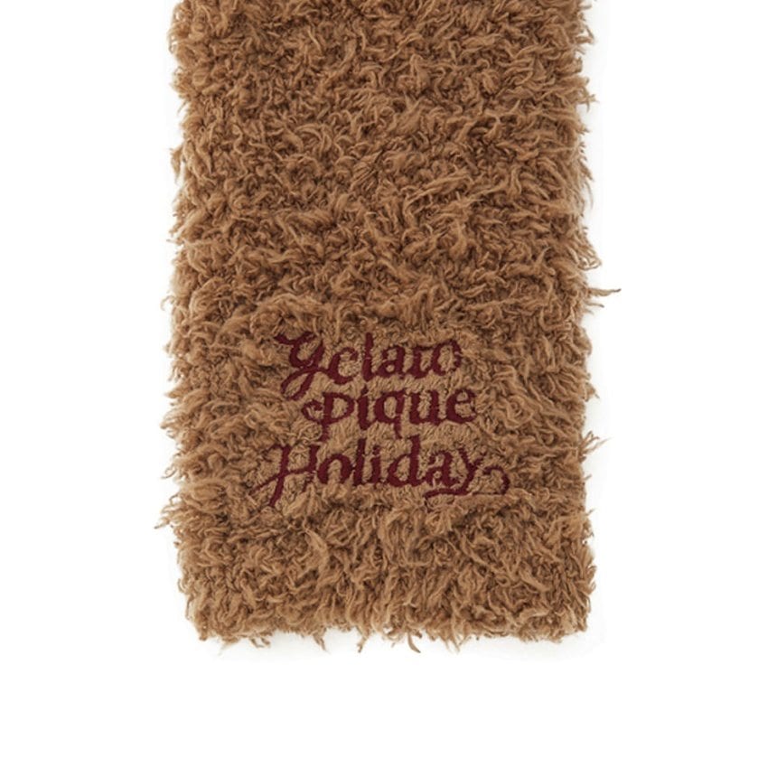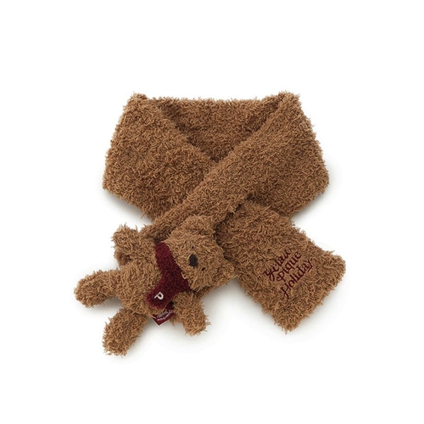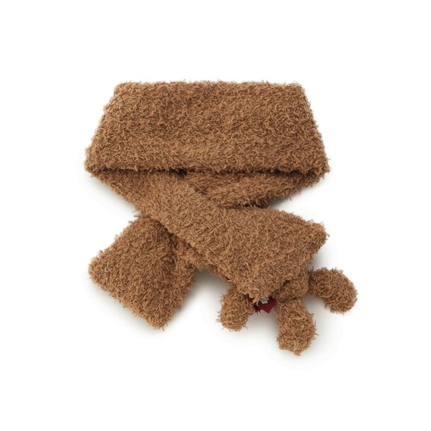家族や友人、大切な誰かと過ごす温かなホリデーシーズンに寄り添う、スペシャルな小物シリーズです。毛足の長い‘ジェラート’を使用した、ベアモチーフのKIDSティペット。赤いマフラーを巻いたベアのぬいぐるみを付けた愛らしいデザインです。ワンポイントで赤いロゴ刺しゅうも添え、温もりたっぷりに仕上げました。