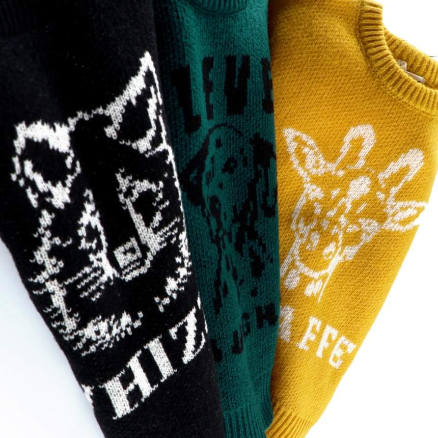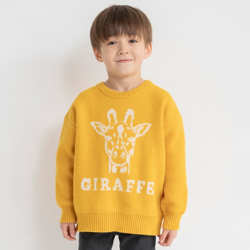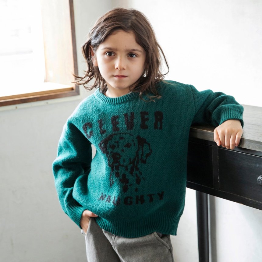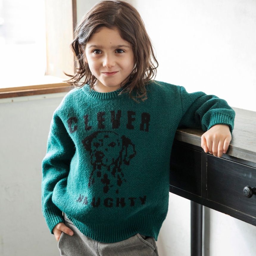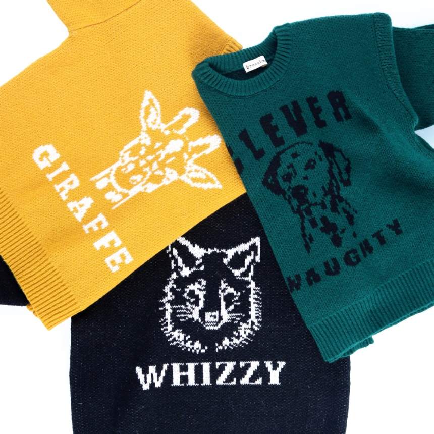 ジャガード編みのアニマルたちが印象的なニットトップスです。