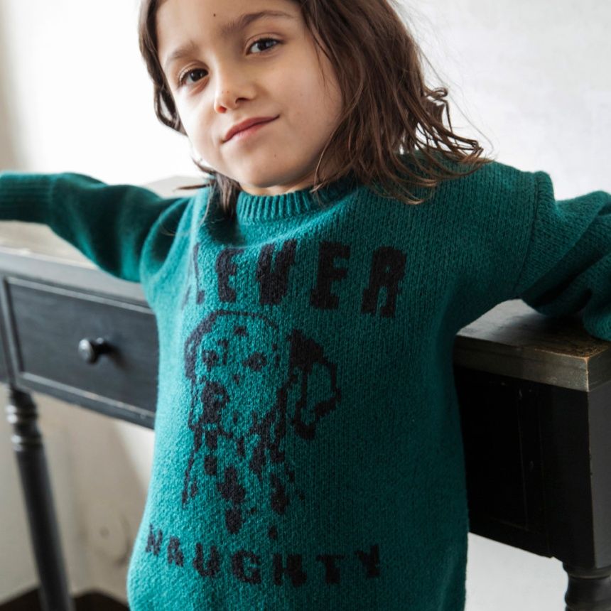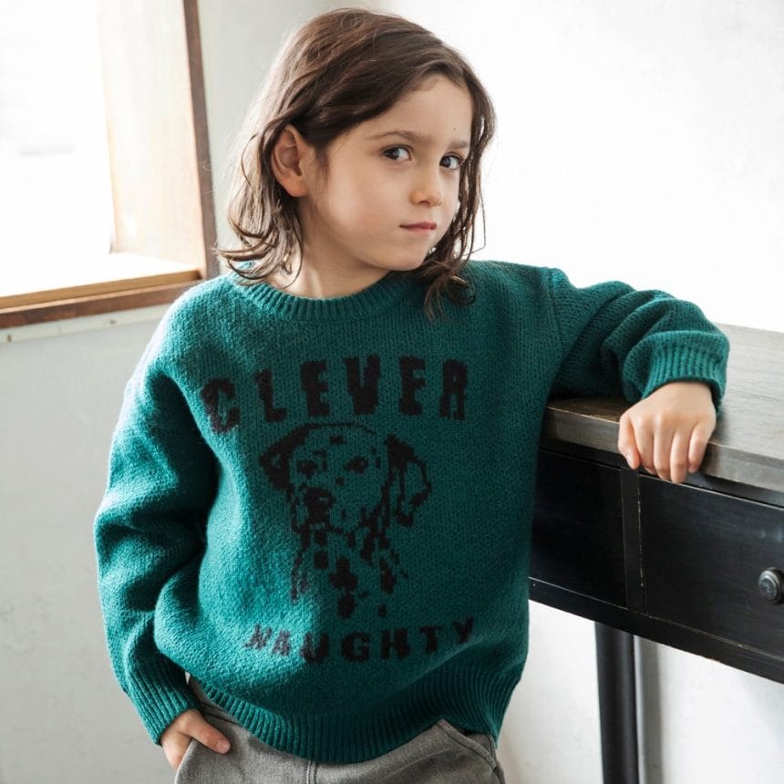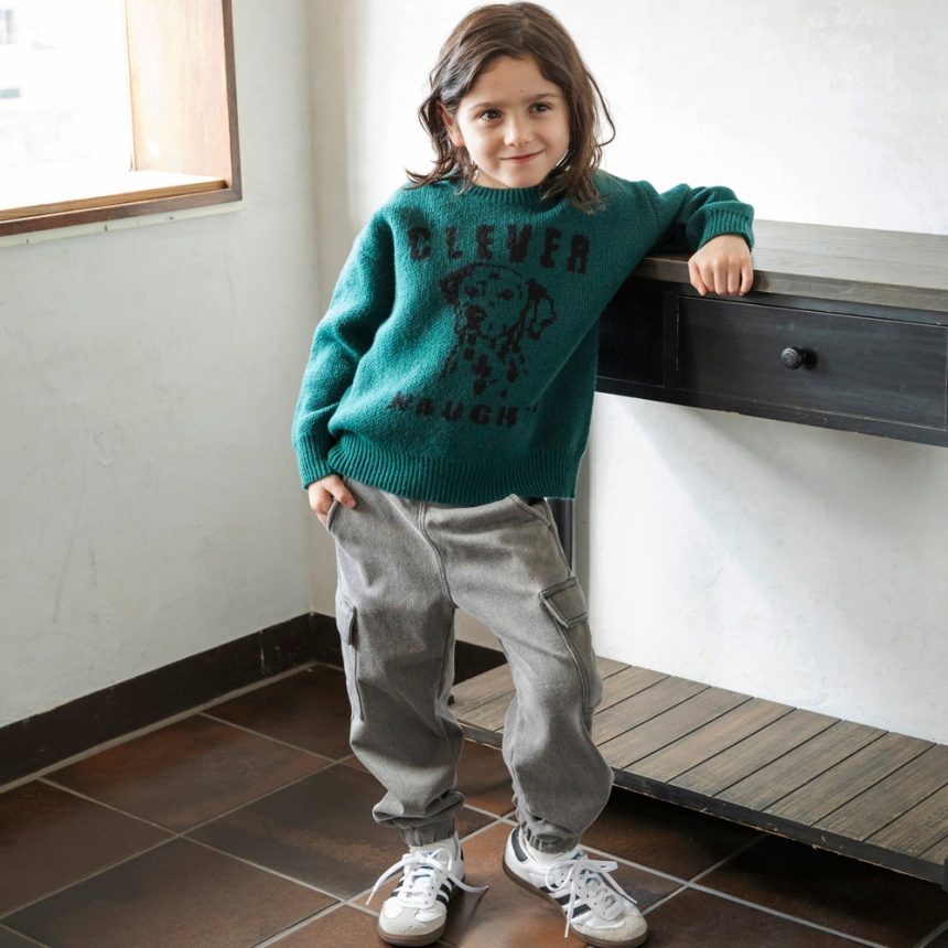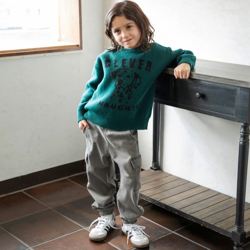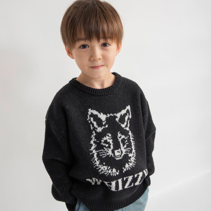 ジャガード編みのアニマルたちが印象的なニットトップスです。