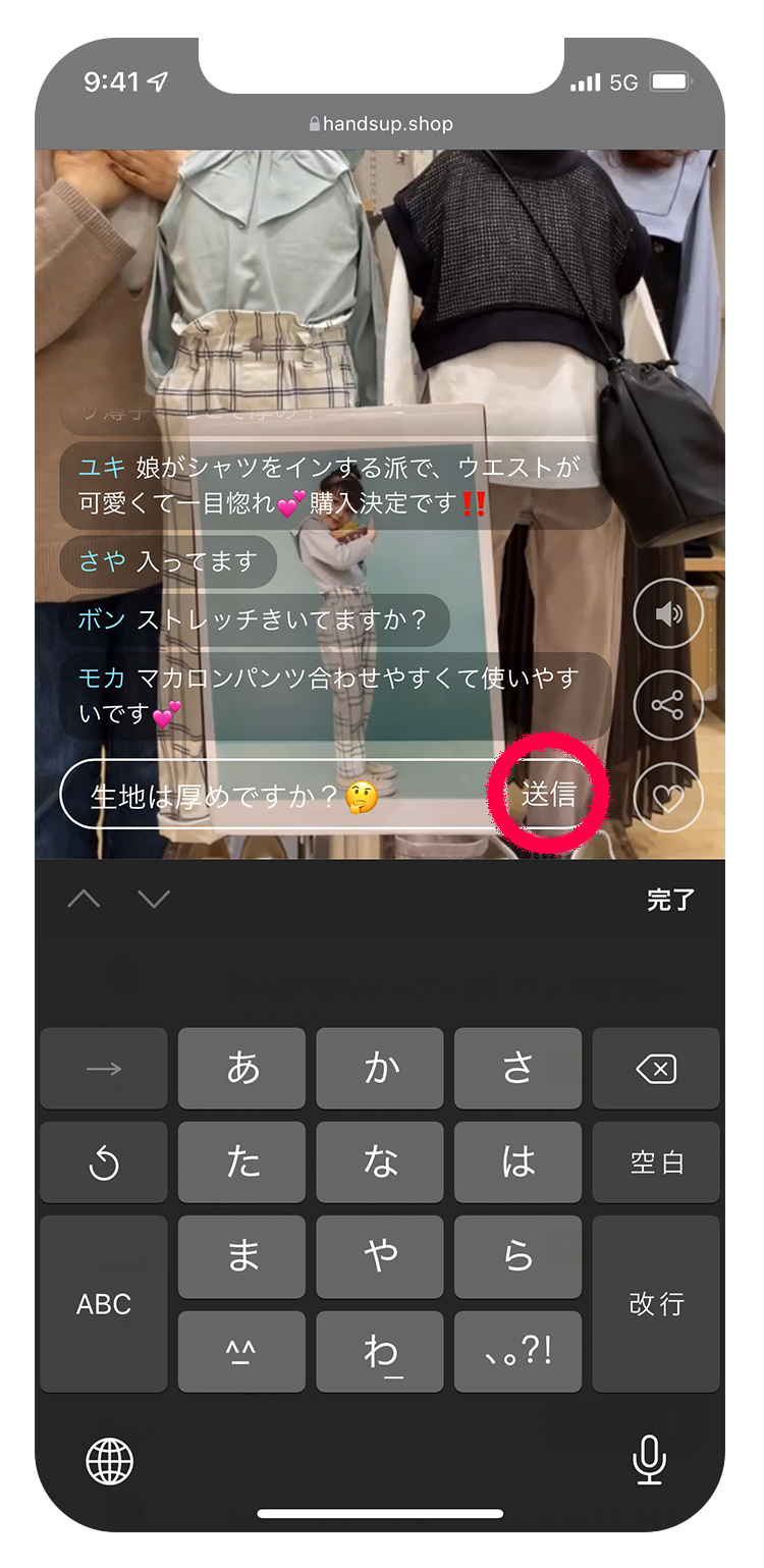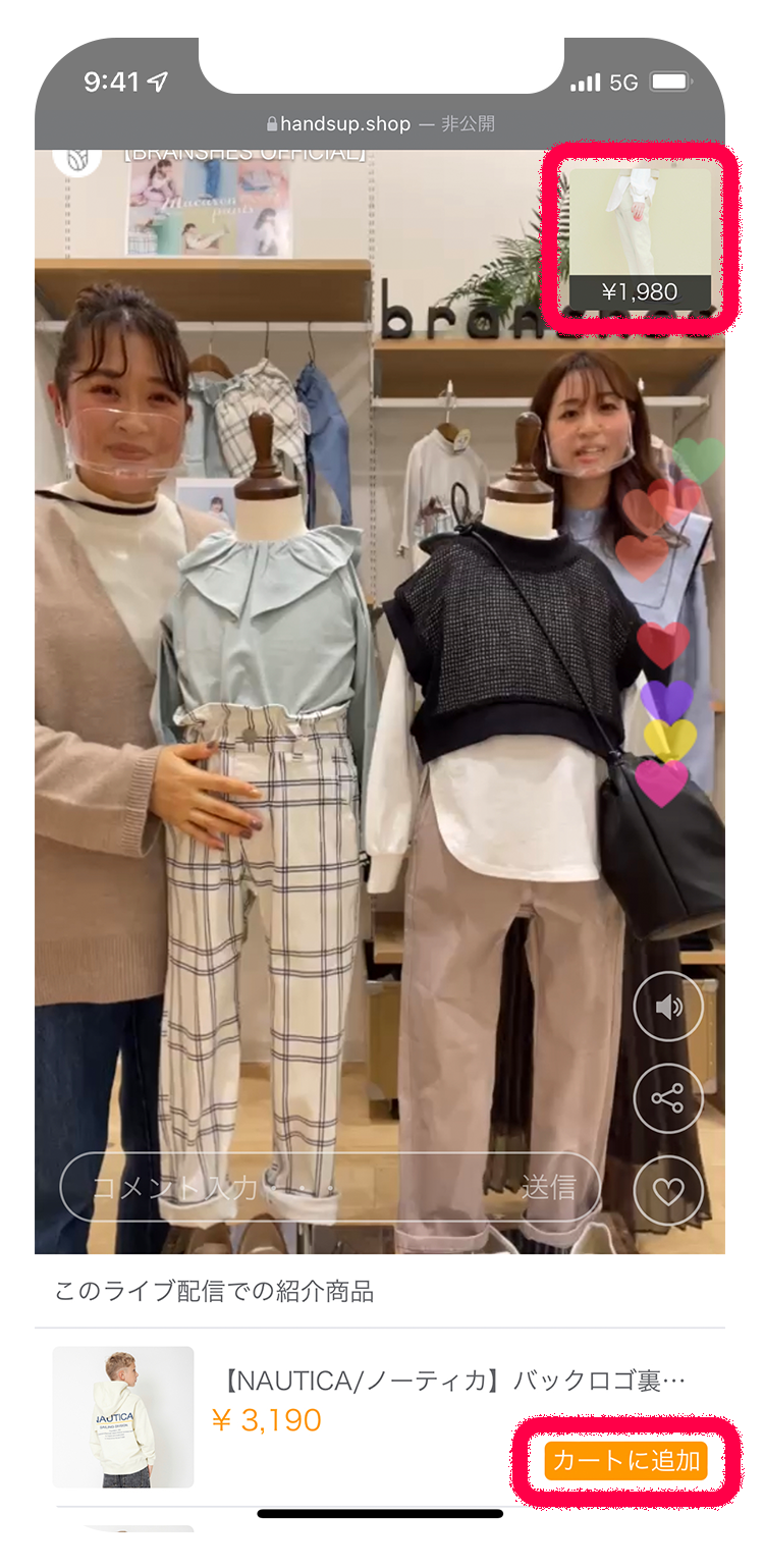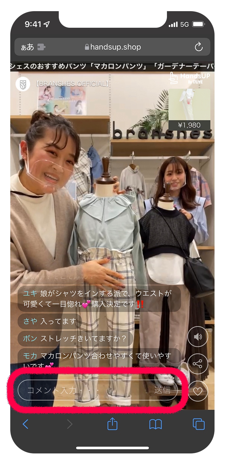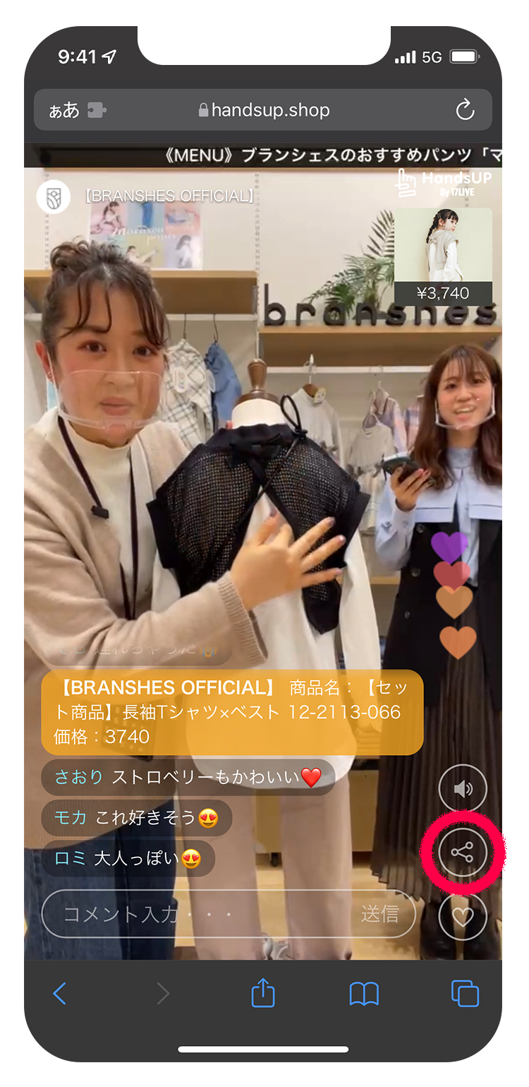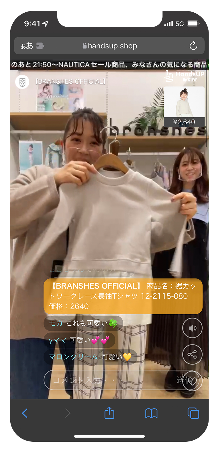 17LIVE株式会社のライブコマースシステム「HandsUP」を利用して配信を行っております。